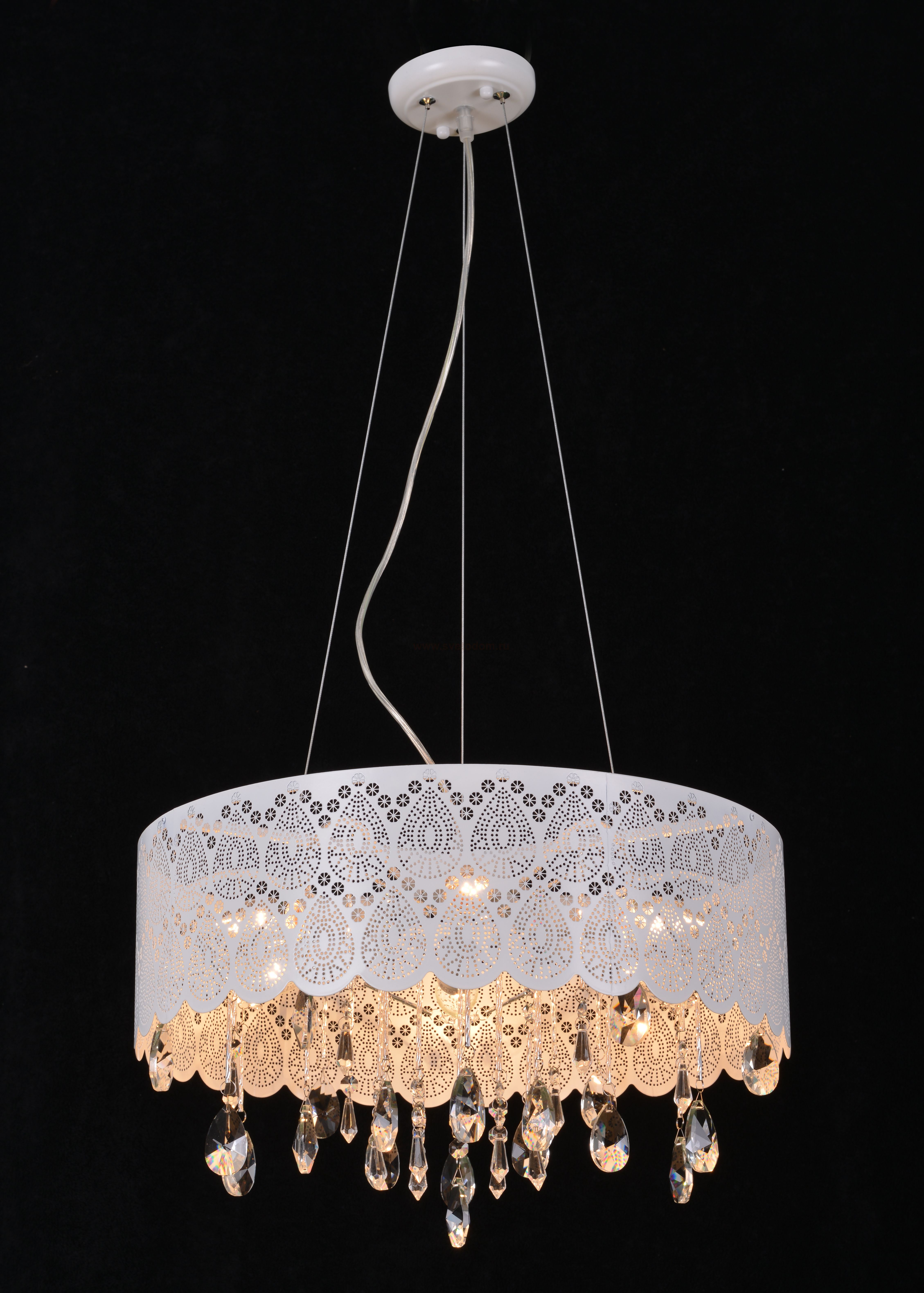 Если Вы настроены купить светильник модели SL24830306, то обратите внимание: Белоснежная люстра Leggerе озарит светом и подарит нотку нежности любому пространству. Все элементы металлического основания белого цвета. Ажурный плафон изготовлен с помощью лазерной резки и напоминает о вышивке или кружеве. Из- под плафона свисают подвески из прозрачного хрусталя. Элегантная люстра Leggere украсит гостиную, столовую, комнату отдыха с интерьером в пастельных тонах и с преобладанием белого цвета в мебели.