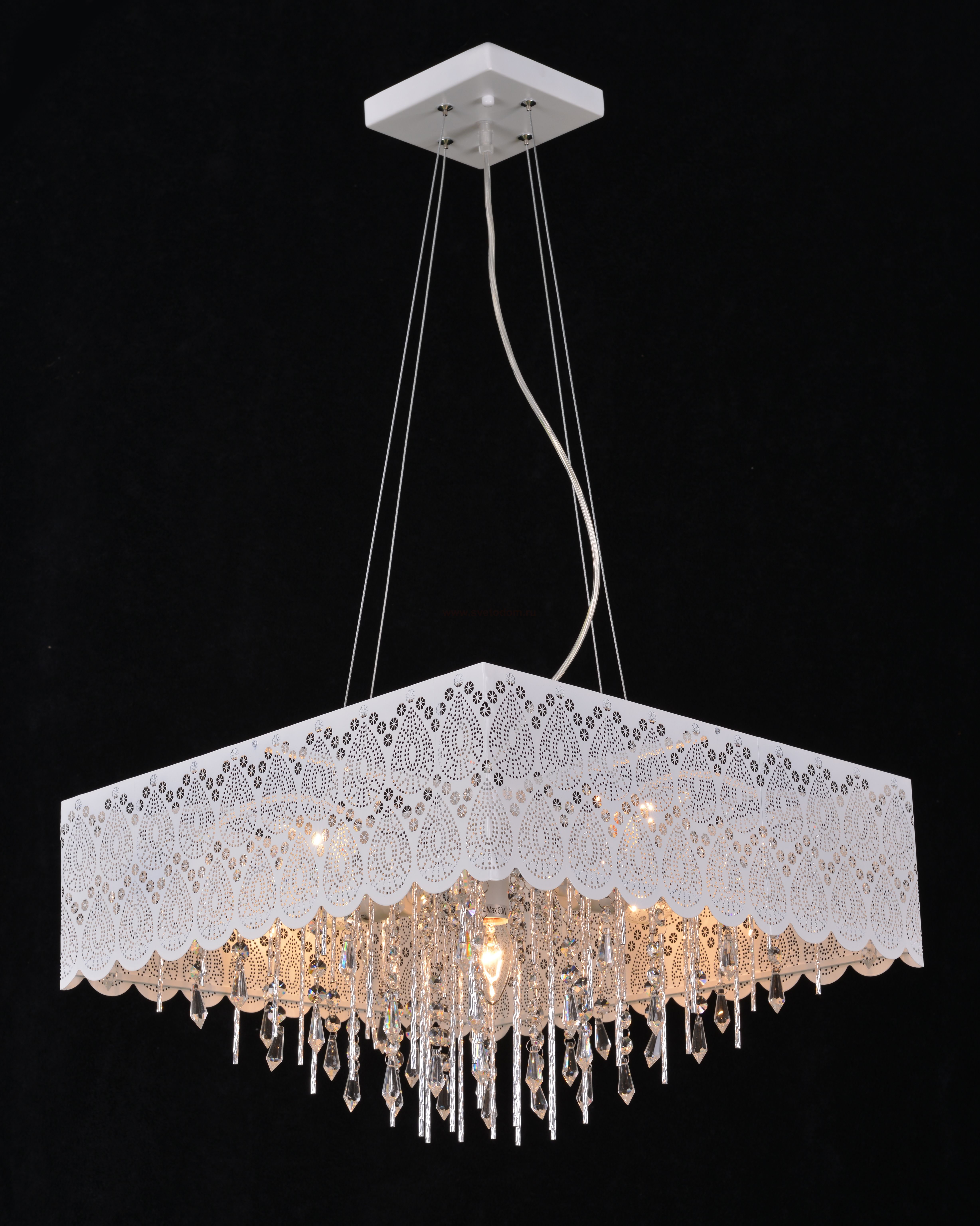 Если Вы настроены купить светильник модели SL24910305, то обратите внимание: Белоснежная люстра Leggerе озарит светом и подарит нотку нежности любому пространству. Все элементы металлического основания белого цвета. Ажурный плафон изготовлен с помощью лазерной резки и напоминает о вышивке или кружеве. Из- под плафона свисают подвески из прозрачного хрусталя. Элегантная люстра Leggere украсит гостиную, столовую, комнату отдыха с интерьером в пастельных тонах и с преобладанием белого цвета в мебели.