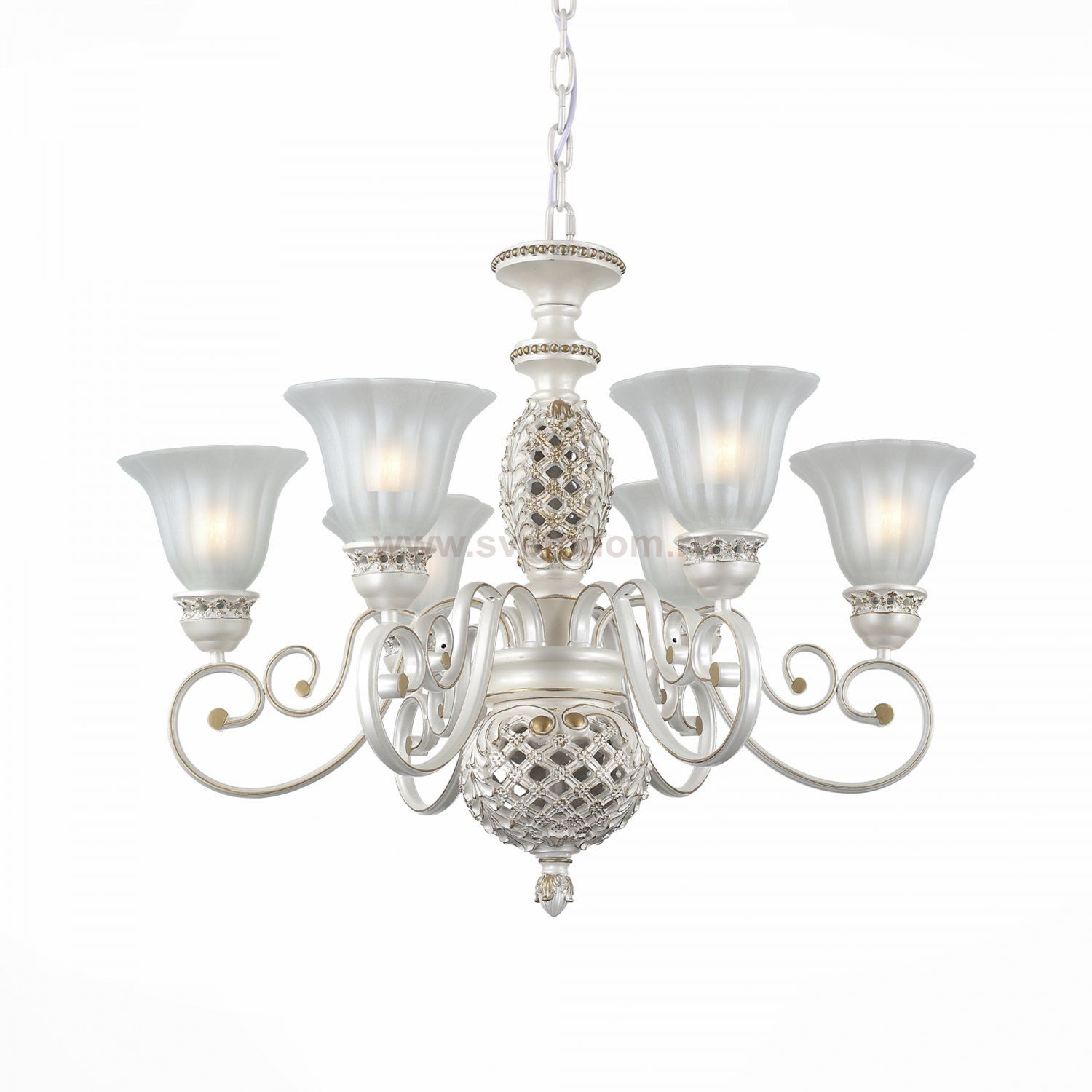 Касаемо коллекции модели St luce SL309.503.06 хотелось бы отметить основные моменты: Роскошные люстры коллекции Elegy украсят зал, спальню, банкетный зал в стиле модерн или классики. Основание светильников изготовлено из металла и смеси смол. окрашено в перламутровый белый цвет и расписано вручную золотой краской. Плафоны бокаловидной формы, выполненные из белого матового стекла, гармонично сочетаются с изысканной арматурой люстр коллекции Elegy.