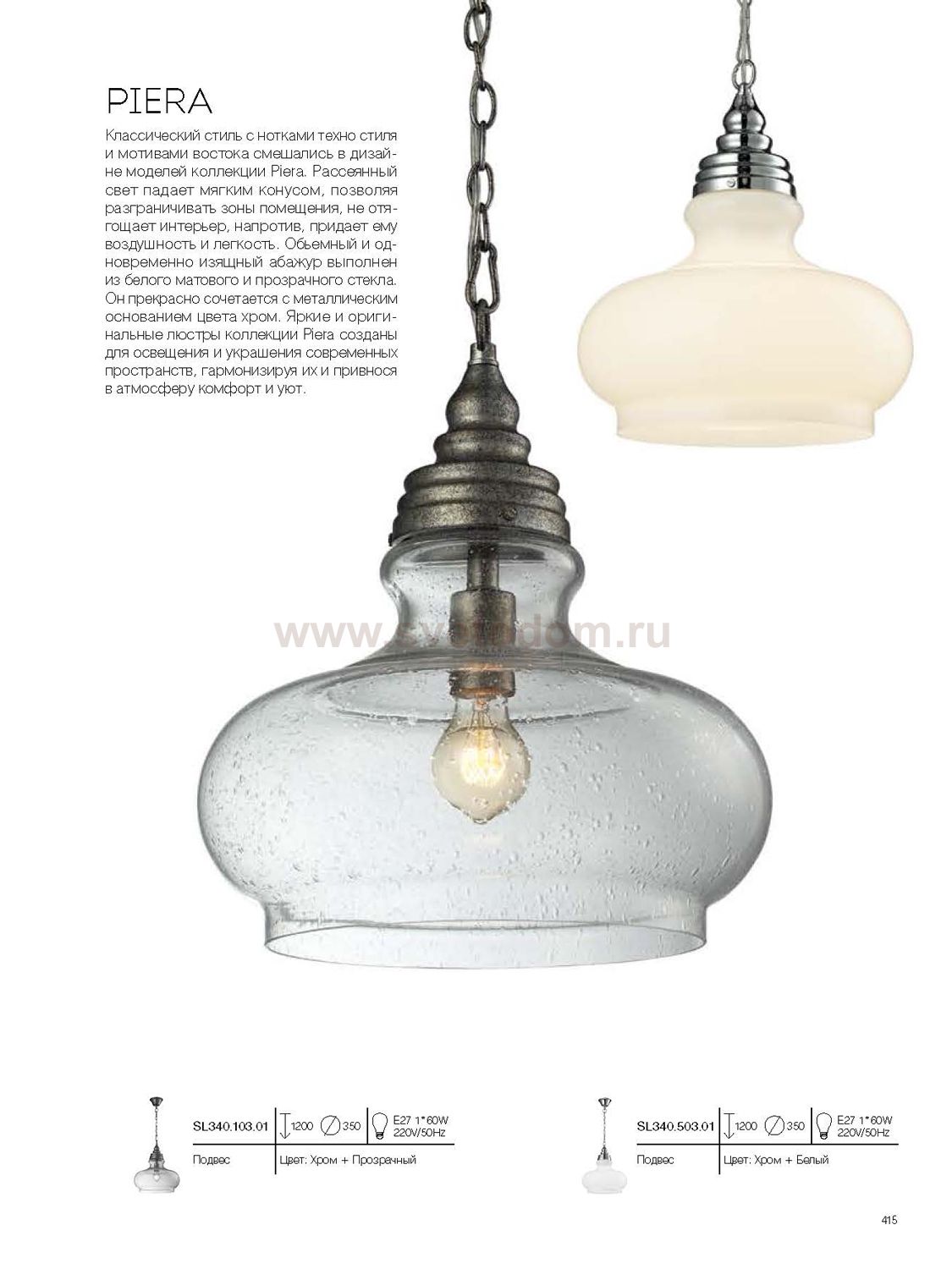 Если Вы настроены купить светильник модели SL34010301, то обратите внимание: Классический стиль с нотками техно стиля и мотивами востока смешались в дизайне моделей коллекции Piera. Рассеянный свет падает мягким конусом, позволяя разграничивать зоны помещения, не отягощает интерьер, а, напротив, придает ему воздушность и легкость. Обьемный и одновременно изящный абажур выполнен из белого матового и прозрачного стекла. Он прекрасно сочетается с металлическим основанием цвета хром. Яркие и оригинальные люстры коллекции Piera созданы для освещения и украшения современных пространств, гармонизируя их и привнося в атмосферу комфорт и уют.