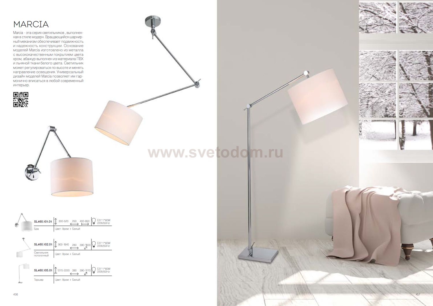 Marcia - эта серия светильников , выполненная в стиле модерн. Вращающийся шарнирный механизм обеспечивает подвижность и надежность конструкции. Основание моделей Marcia изготовлено из металла с высококачественным покрытием цвета хром, абажур выполнен из материала ПВХ и льняной ткани белого цвета. Светильник может регулироваться по высоте и менять направление освещения. Универсальный дизайн моделей Marcia позволяет им гармонично вписаться в любой современный интерьер.