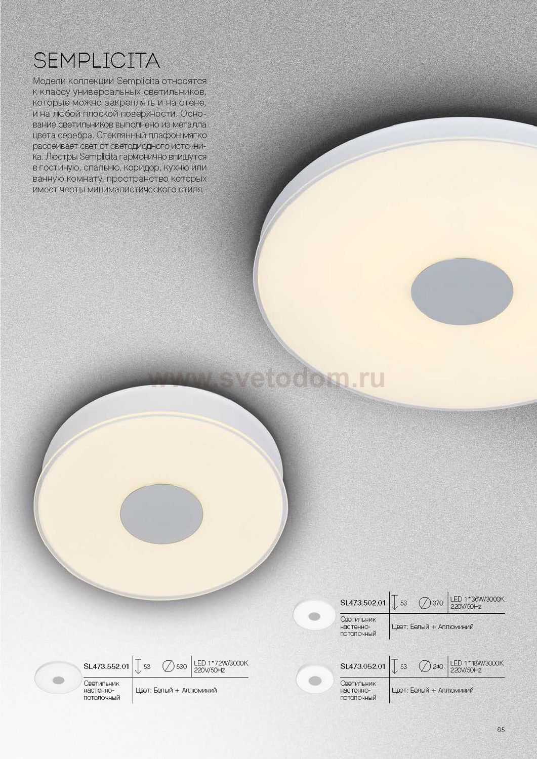 Если Вы настроены купить светильник модели SL47305201, то обратите внимание: Модели коллекции Semplicita относятся к классу универсальных светильников, которые можно закреплять и на стене, и на любой плоской поверхности. Основание светильников выполнено из металла цвета серебра. Стеклянный плафон мягко рассеивает свет от светодиодного источника. Люстры Semplicita гармонично впишутся в гостиную, спальню, коридор, кухню или ванную комнату , пространство которых имеет черты минималистического стиля.