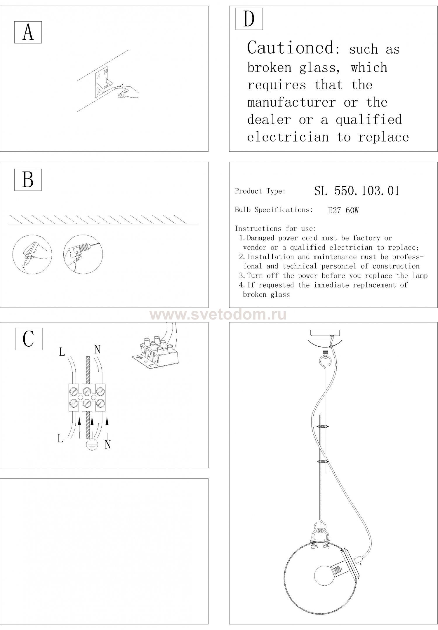 Светильник подвесной Артикул производителя