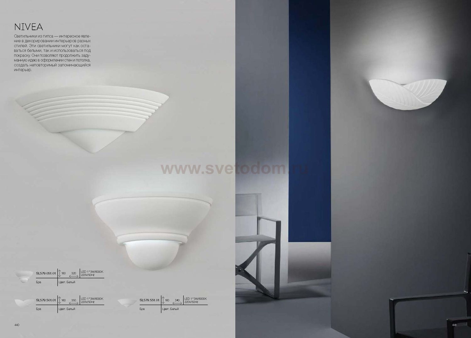 Касаемо коллекции модели St luce SL579.051.01 хотелось бы отметить основные моменты: Светильники из гипса-интересное явление в декорировании интерьеров разных стилей. Эти светильники могут как оставаться белыми, так и использоваться под покраску. Они позволяют продолжить задуманное идею в оформлении стен и потолка, создать неповторимый запоминающийся интерьер.