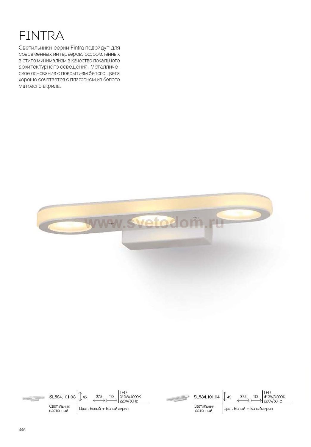 Касаемо коллекции модели St luce SL584.101.03 хотелось бы отметить основные моменты: Светильники серии Fintra подойдут для современных интерьеров, оформленных в стиле минимализм в качестве локального архитектурного освещения. Металлическое основание с покрытием белого цвета хорошо сочетается с плафоном из белого матового акрила.