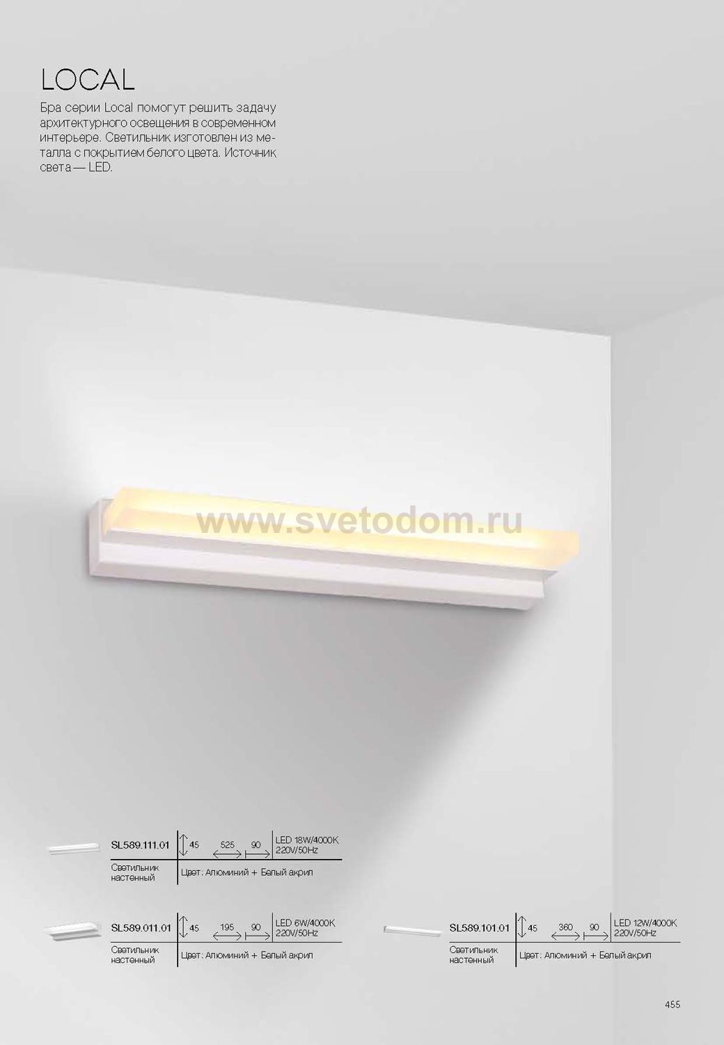 Касаемо коллекции модели St luce SL589.101.01 хотелось бы отметить основные моменты: Бра серии Local помогут решить задачу архитектурного освещения в современном интерьере. Светильник изготовлен из металла с покрытием белого цвета. Источник света – LED.