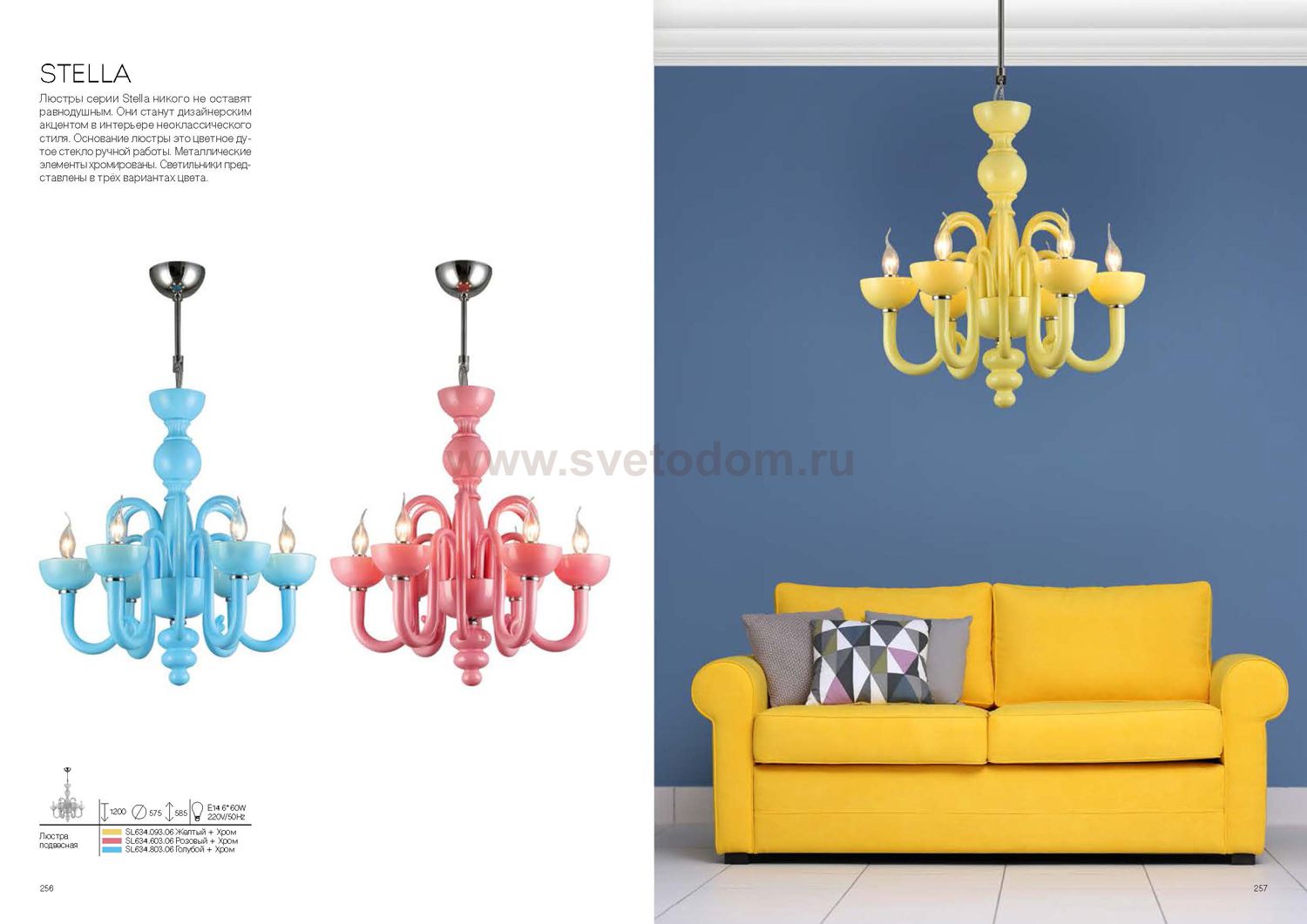 Касаемо коллекции модели St luce SL634.093.06 хотелось бы отметить основные моменты: Люстры серии Stella никого не оставят равнодушным. Они станут дизайнерским акцентом в интерьере неоклассического стиля. Основание люстры это цветное дутое стекло ручной работы. Металлические элементы хромированы. Светильники представлены в трёх вариантах цвета.