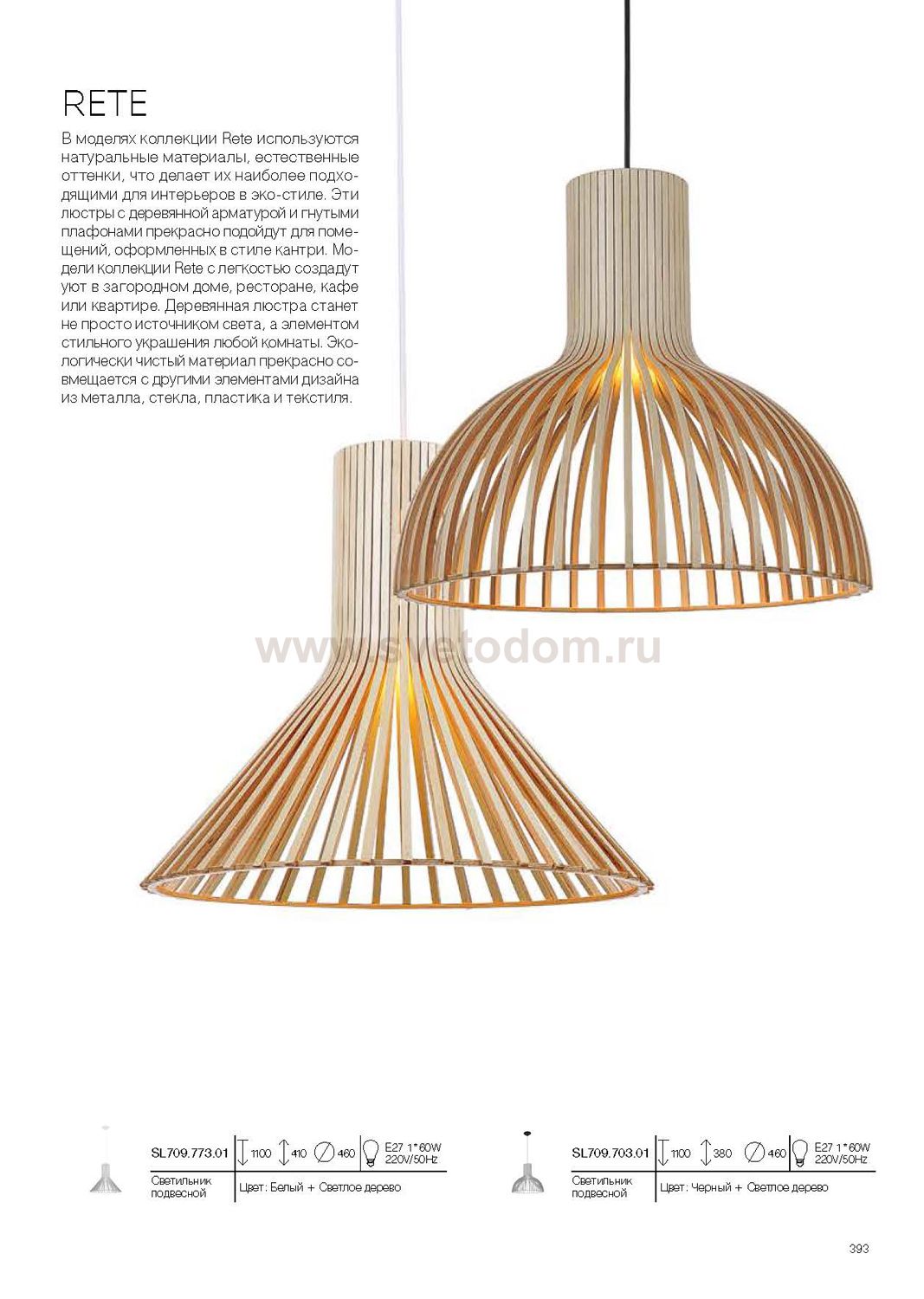 Если Вы настроены купить светильник модели SL70970301, то обратите внимание: В моделях коллекции Rete используются натуральные материалы, естественные оттенки, что делает их наиболее подходящими для интерьеров в эко-стиле. Эти люстры с деревянной арматурой и гнутыми плафонами прекрасно подойдут для помещенияй, оформленных в стиле кантри. Модели коллекции Rete с легкостью создадут уют в загородном доме, ресторане, кафе или в квартире. Деревянная люстра станет не просто источником света, а элементом стильного украшения любой комнаты. Экологически чистый материал прекрасно совмещается с другими элементами дизайна из металла, стекла, пластика и текстиля.