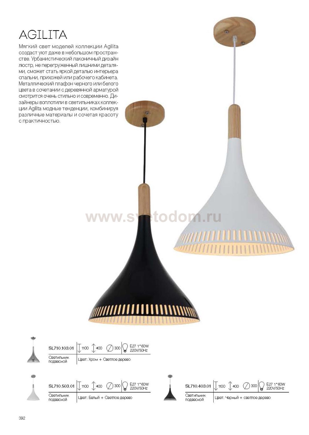 Если Вы настроены купить светильник модели SL71010301, то обратите внимание: Мягкий свет моделей коллекции Agilita создаст уют даже в небольшом пространстве . Урбанистический лаконичный дизайн люстр, не перегруженный лишними деталями, сможет стать ярким акцентом интерьера спальни, прихожей или рабочего кабинета.. Металлический плафон черного или белого цвета в сочетании с деревянной арматурой смотрится очень стильно и современно. Дизайнеры воплотили в светильниках коллекции Agilita модные тенденции, комбинируя различные материалы и сочетая красоту с практичностью.