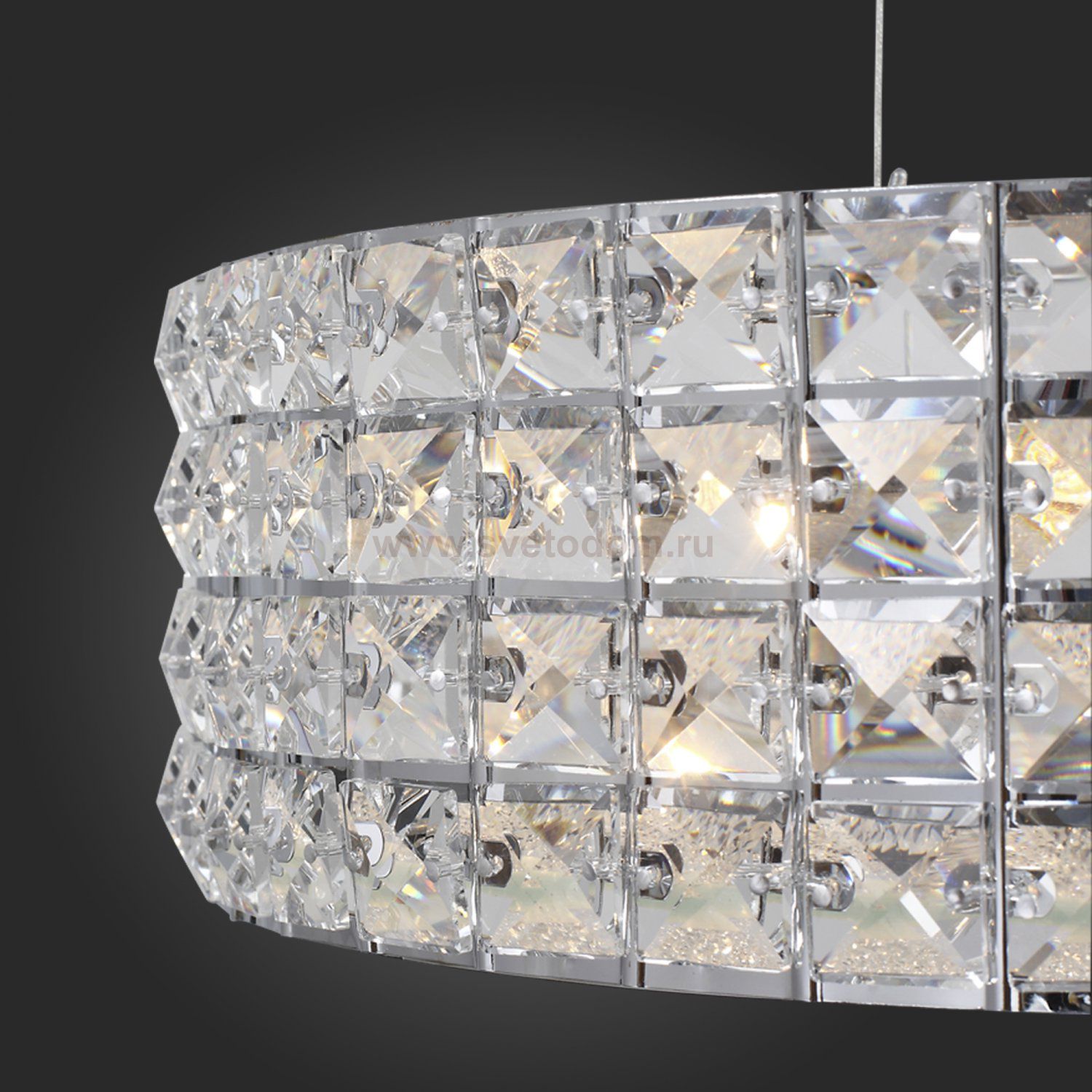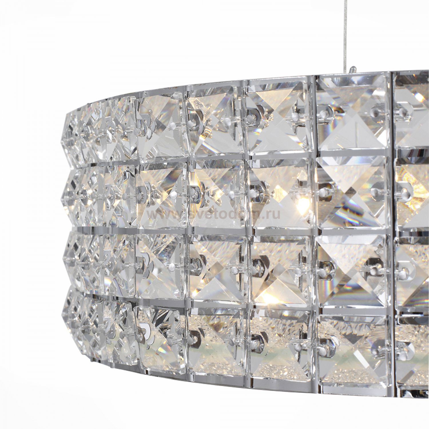Если Вы настроены купить светильник модели SL75210306, то обратите внимание: Технологическая роскошь футуристической люстры Piatto превосходно совмещает в себе яркость современных направлений в дизайне и утонченность богатой хрустальной отделки. Форма люстры преисполнена легкостью и воздушностью .У подвесных моделей коллекции Piatto тончайшие подвесы практически не заметны, поэтому создается ощущение, что блистающее хромом основание , украшенное изысканными элементам из прозрачного хрусталя, соединены какой-то неведомой и невидимой силой. Блестящая люстра для любителей роскоши и ценителей гламура.