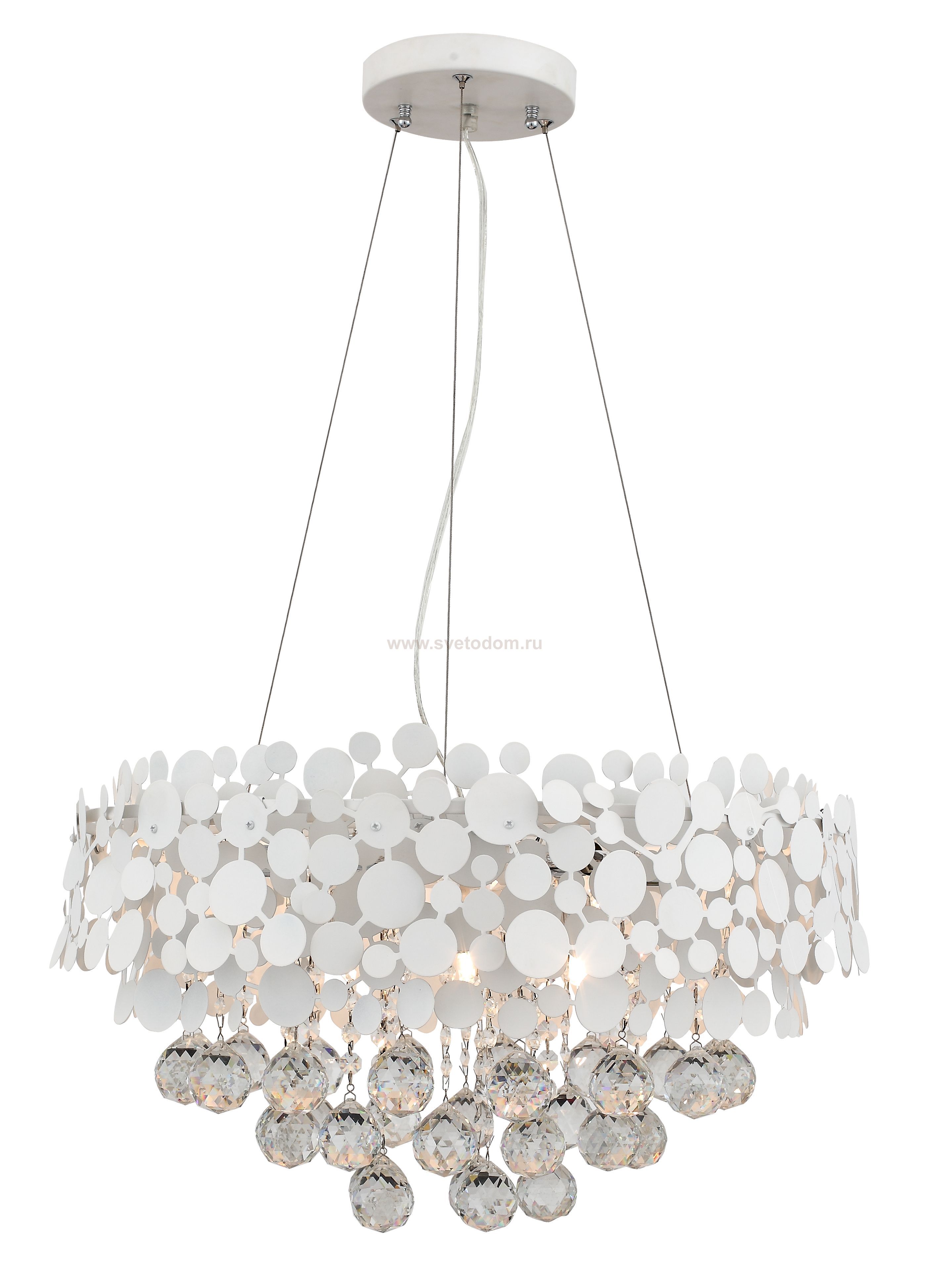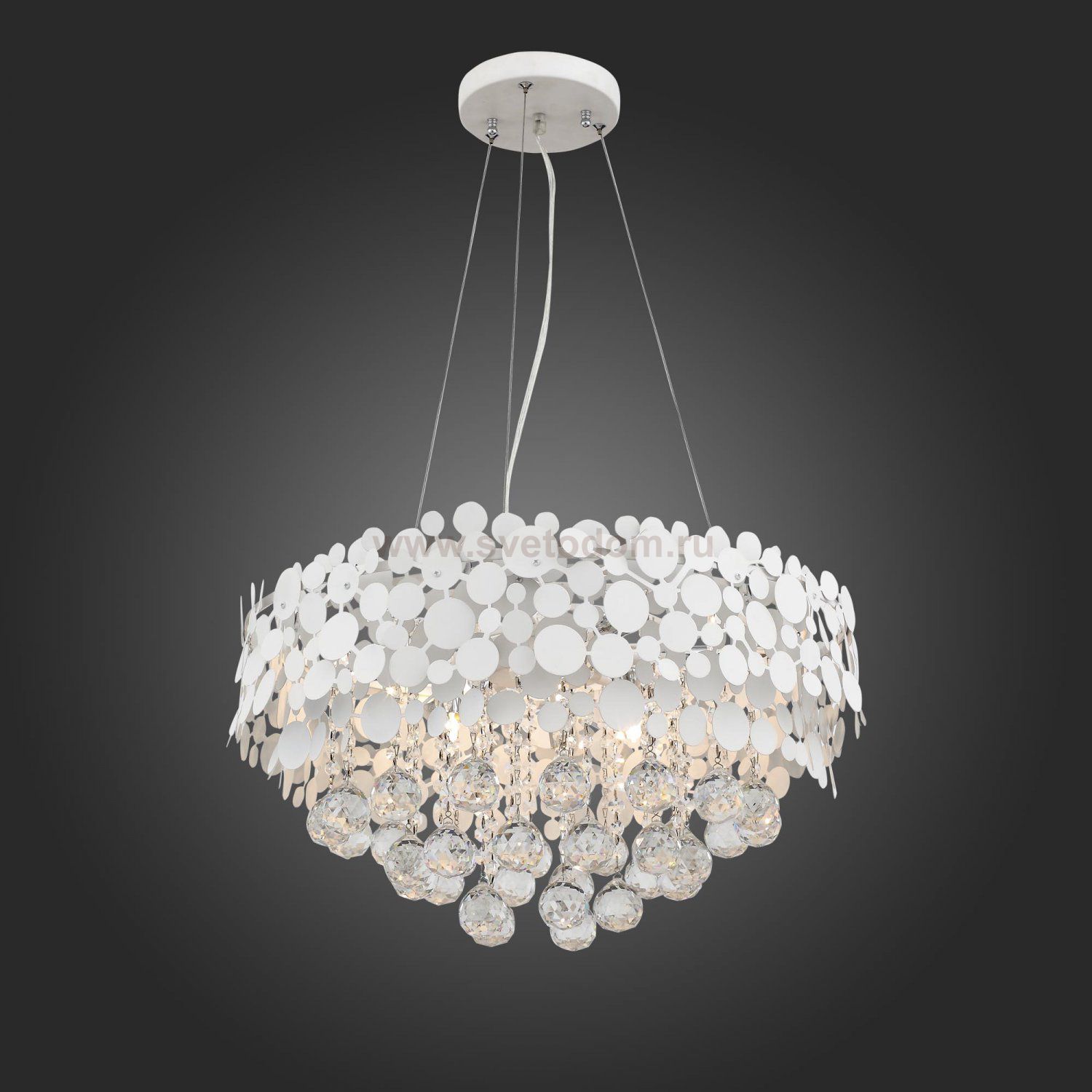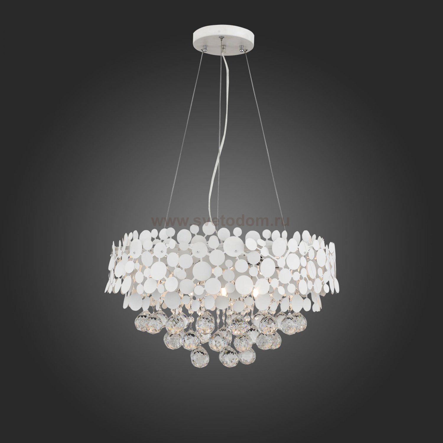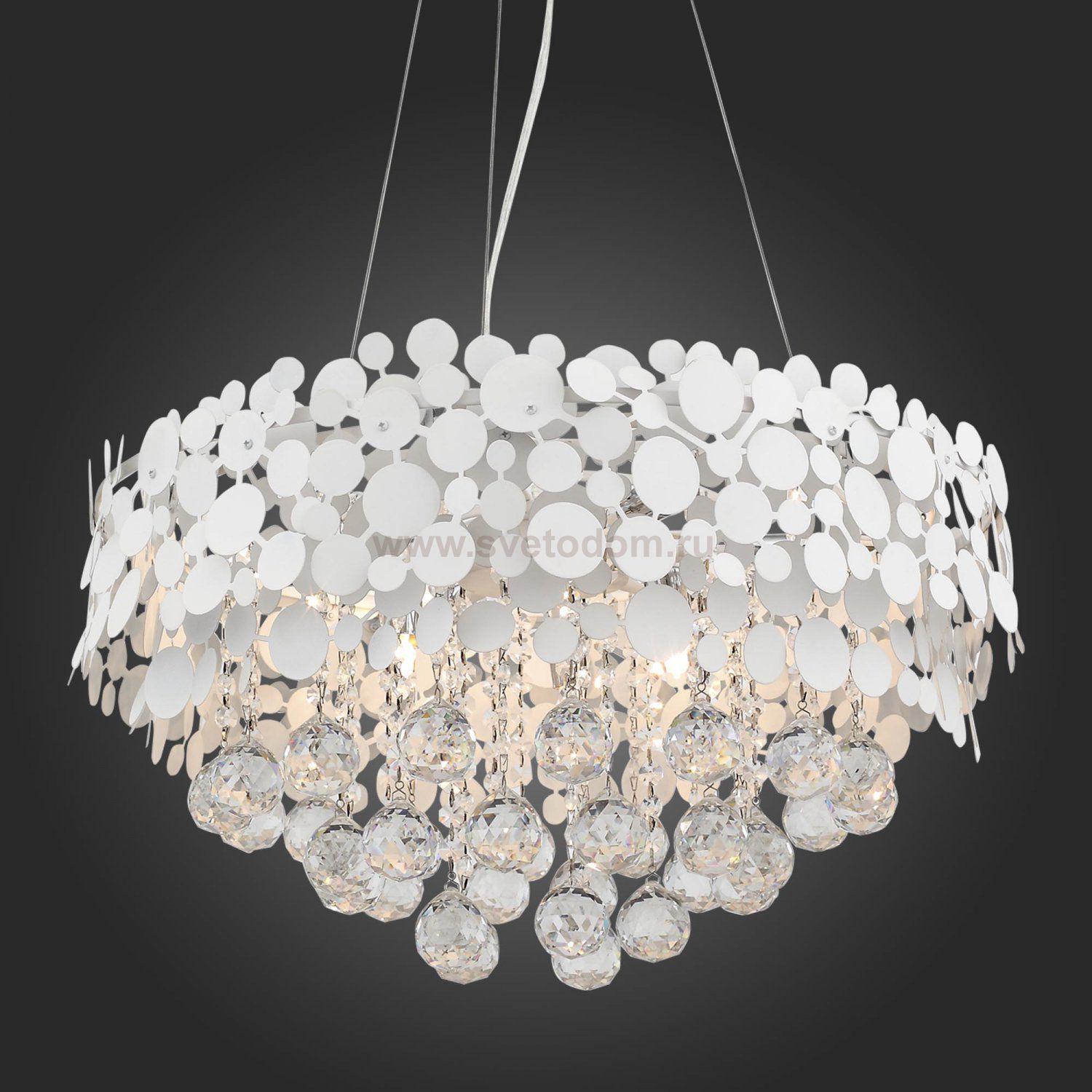 Касаемо коллекции модели St luce SL790.503.09 хотелось бы отметить основные моменты: Люстры серии Filetto роскошны и элегантны, как многие декоративные вещи эпохи арт-деко и модерн. Основание и абажур светильников выполнены из металла белого или черного цвета. Ажурность абажура достигнута за счет лазерной резки металла. Из-под абажура спускаются многочисленные хрустальные подвесы, переливы которых завораживают.