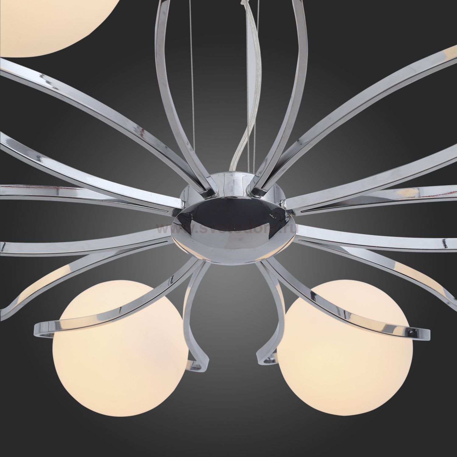 Если Вы настроены купить светильник модели SL84810308, то обратите внимание: Люстры Loopo – это интересная архитектурная форма,одновременно элегантность и легкость . Основание изготовлено из металла и окрашено в цвет хрома . В центре композиции белые плафоны, каждый из которых имеет форму шара. Тонкие овалы, словно заключающие в себе плафоны, образуют композицию, отдаленно напоминающую фантастический цветок . Такая люстра непременно станет центром притяжения внимания.
