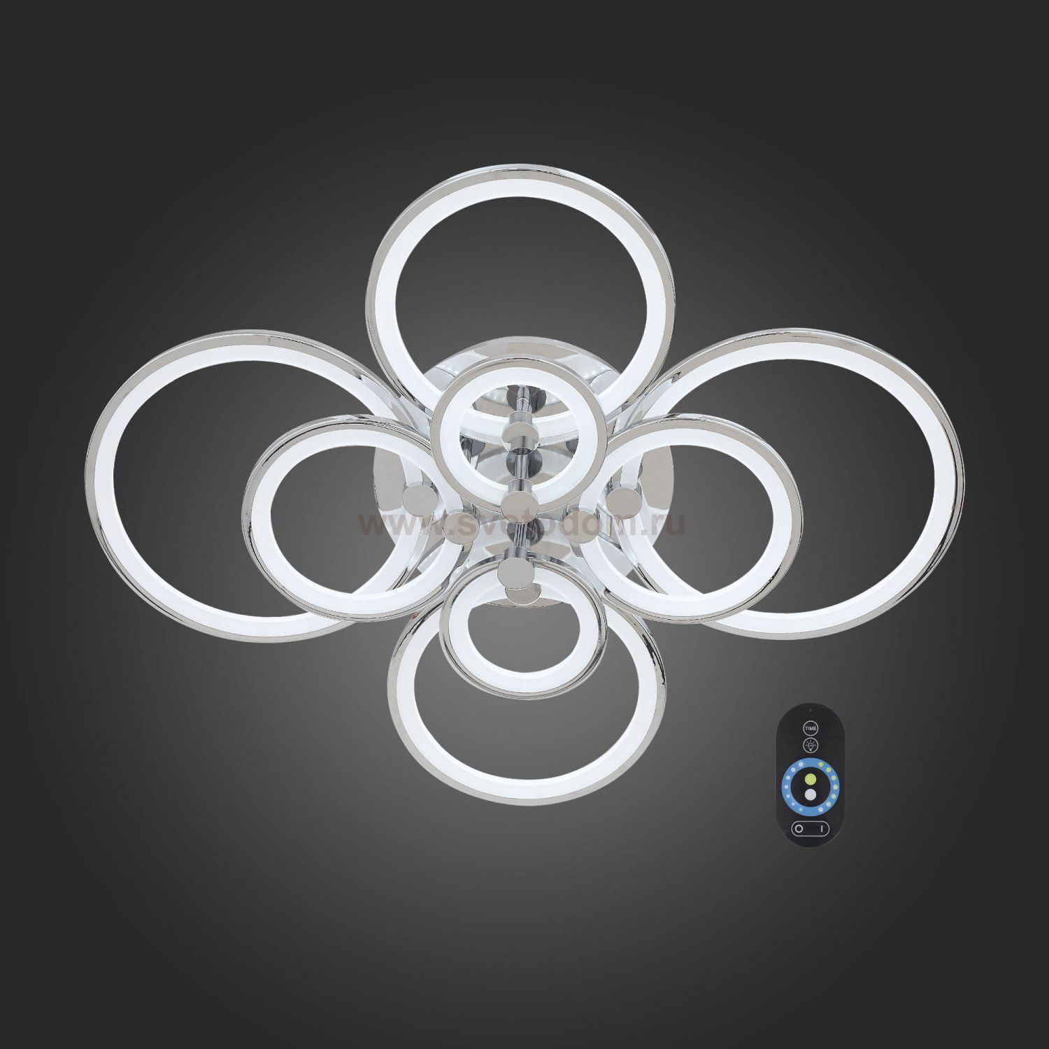 Если Вы настроены купить светильник модели SL86710208, то обратите внимание: Люстры из серии Twiddle - находка для ценителей современных дизайнерских инноваций в интерьере. Основание светильника выполнено из металла и представленно в пяти цветах (белый, черный, хром, золото, бронза). В качестве источника освещения используется светодиодная лента, которая декорирована полупрозрачным акрилом. Данная модель оснащена пультом, с помощью которого можно регулировать яркость и цветовую температуру свечения 3000K/4100K/6000K.