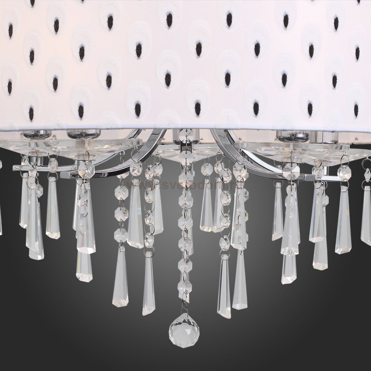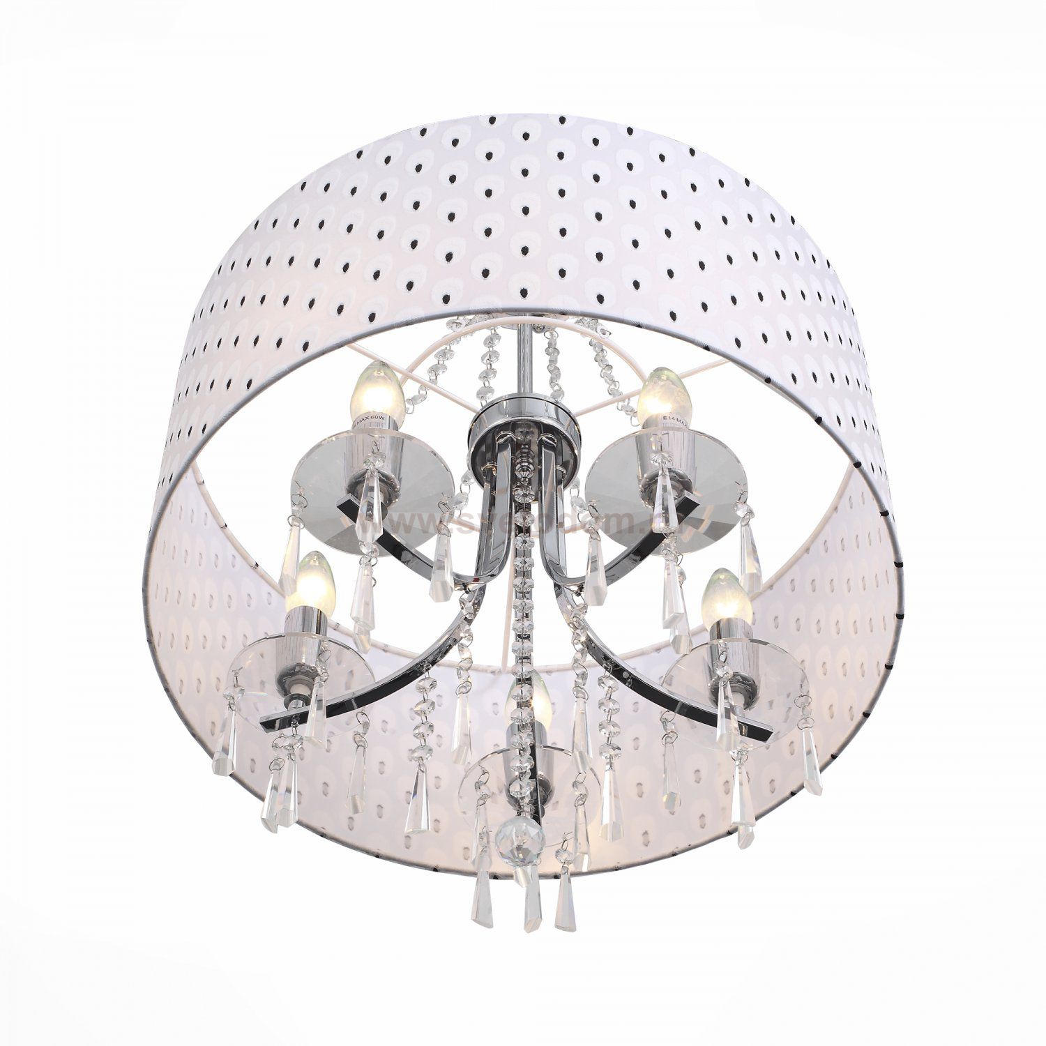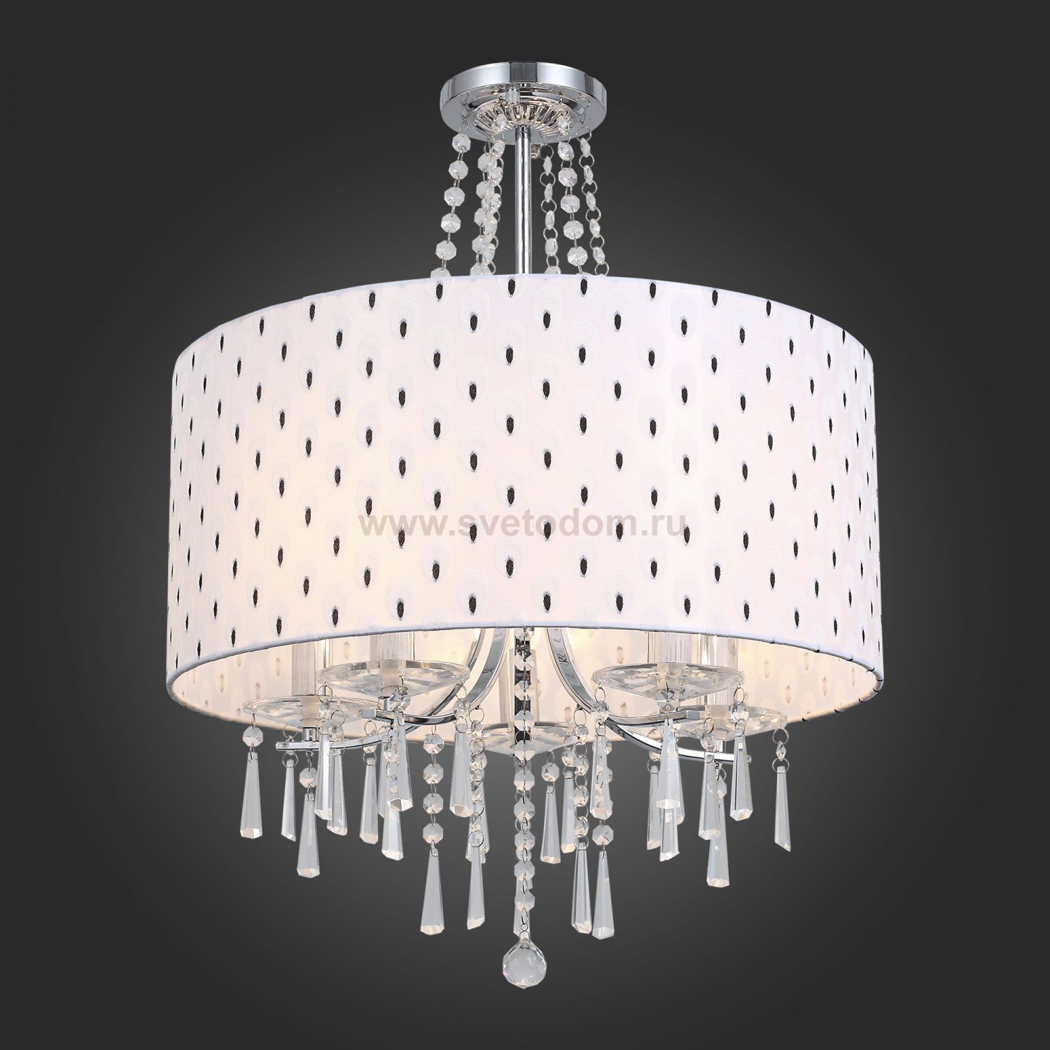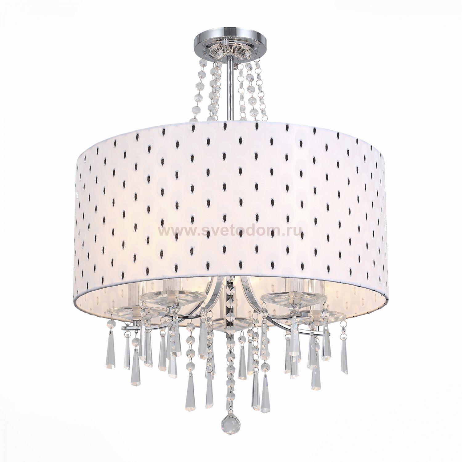 Если Вы настроены купить светильник модели SL89410205, то обратите внимание: Нежностью и застенчивостью наполняется все вокруг, как только светильник из коллекции Casa начинает светить мягким направленным светом. Затейливые горошины, которыми щедро украшен абажур этих чудесных люстр, придают крупному по размеру плафону лёгкость и незатейливость. Романтический образ дополняют хрустальные капли продолговатой формы, их свет игриво бликует в пространстве . Каркас люстры металлический, хромированный. Цокали лампочек выполнены в виде свечей, установленных в подсвечники. Люстра Casa создает в комнате уютную, домашнюю , беззаботную атмосферу.