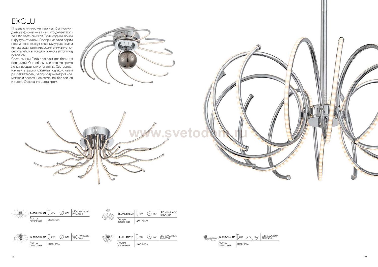 Касаемо коллекции модели St luce SL905.102.24 хотелось бы отметить основные моменты: Люстры серии Exclu разработаны дизайнерами для ценителей современных инноваций в интерьере. Они станут изысканным акцентом и в помещении в стиле модерн, и в стиле техно. Основание и лучи разных форм выполнены из хромированного металла. Источники света - LED, декорированы акриловыми плафонамиполосками.
