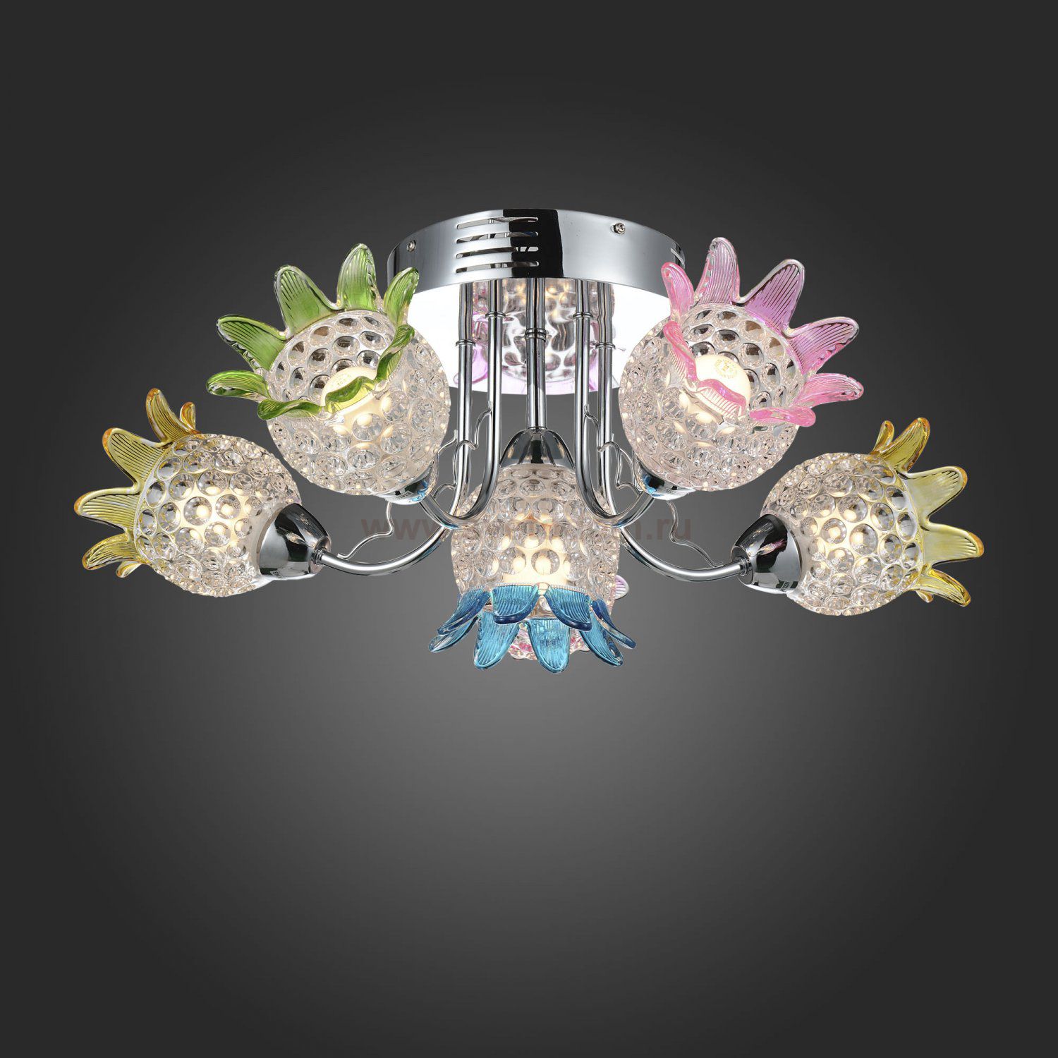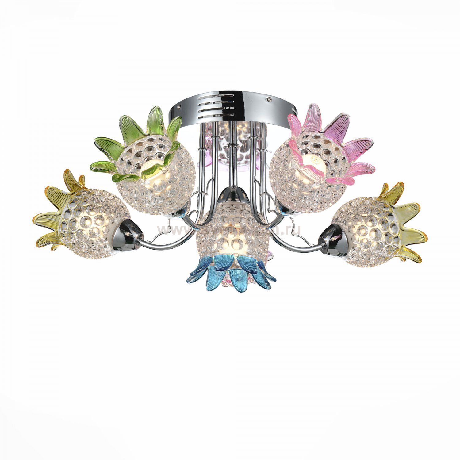 Если Вы настроены купить светильник модели SLE10010206, то обратите внимание: Как сказочная жар-птица, переливается под потолком фантазийная люстра коллекции Iride, созданная дизайнерами на пересечении классики, модерна и техно стилей. Хромированное металлическое основание - модный, современный элемент, который к тому же эффектно отражает световые лучи из направленных вверх прозрачных стеклянных плафонов люстры. Плафоны изготовлены из рельефного стекла и сами по себе уже являются арт-объектами. Лепестки плафонов украшены ярким тонированным напылением. Освещение пространства мягкое, рассеянное.