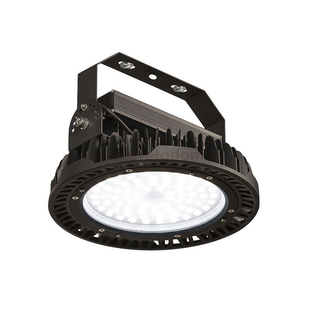 Подвесной диммируемый светильник на скобе PARA FLAC LED, c LED 200Вт премиум-класса, предназначен для использования в технических и промышленных зонах, что отражается в форме и технических характеристиках освещения. Светильник оснащен современной и эффективной светодиодной технологией. Имеет высокую светоотдачу: >100 лм/Вт. Подходит для использования на улице, благодаря классу защиты IP65. Выпускается в черном цвете. Поставляется без цепи и кабеля питания. Благодаря встроенному в модуль светодиодному драйверу, PARA FLAC LED готов для прямого подключения к сети питания 220В. Этот светильник содержит встроенные светодиодные лампы класса энергоэффективности: A - A ++. Поставляется без цепи и кабеля питания