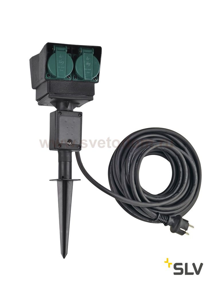 Удлинитель садовый на 4 розетки с откидными крышками, для установки в грунт. В комплекте: опора в грунт, штекер IP-Schuko. Класс защиты IP44 подходит для использования на улице. Электрическое подключение осуществляется с помощью сетевого кабеля длиной 10 м непосредственно к сети 220В. Изготовлен из пластика, доступен в черном цвете. Для эксплуатации во Франции.