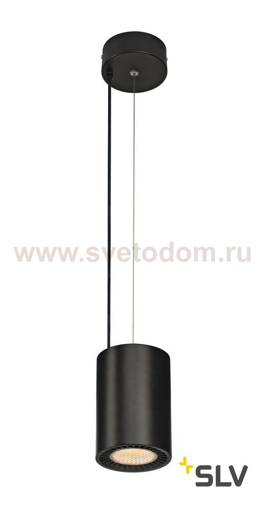 Подвесной светодиодный светильник SUPROS PD в форме цилиндра черного цвета оснащен светодиодным модулем Fortimo SLM Module 28Вт. Светодионые модули с другими характеристиками доступны по запросу. Изготовлен из алюминия, в комплект поставки включены: блок питания, основание, рассеиватель 60°. Подключение производится к сети питания 220В.