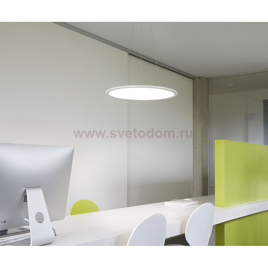 Подвесной светодиодный диммируемый светильник LED PANEL ROUND доступен с чистым дневным или теплым белым цветом света. С общей мощностью около 40 Вт и световым потоком 3000 люмен круглая светодиодная панель обеспечивает удобное, однородное и без бликов освещение. Светильник содержит встроенные светодиодные лампы классов энергоэффективности: А-А ++. Лампы не могут быть заменены.