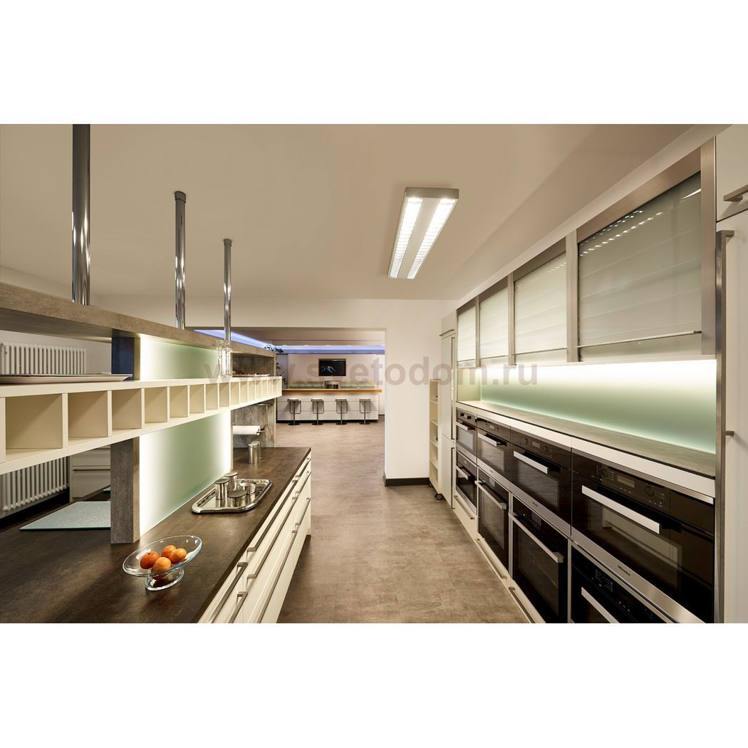 Светодиодный потолочный светильник RASTO LED 1500х300 с корпусом белого цвета. Светильник оснащен глянцевым отражателем, который обеспечивает яркий свет без бликов для использования в офисах, коридорах, конференц-залах. Благодаря встроенному светодиодному драйверу светильник RASTO готов для подключения к сети 220 В. Дополнительный комплект подвесов доступен в качестве аксессуара. Этот светильник содержит четыре встроенные светодиодные лампы. Светильник совместим с лампами классов энергопотребления: A - A ++. Лампы в светильнике не могут быть изменены.