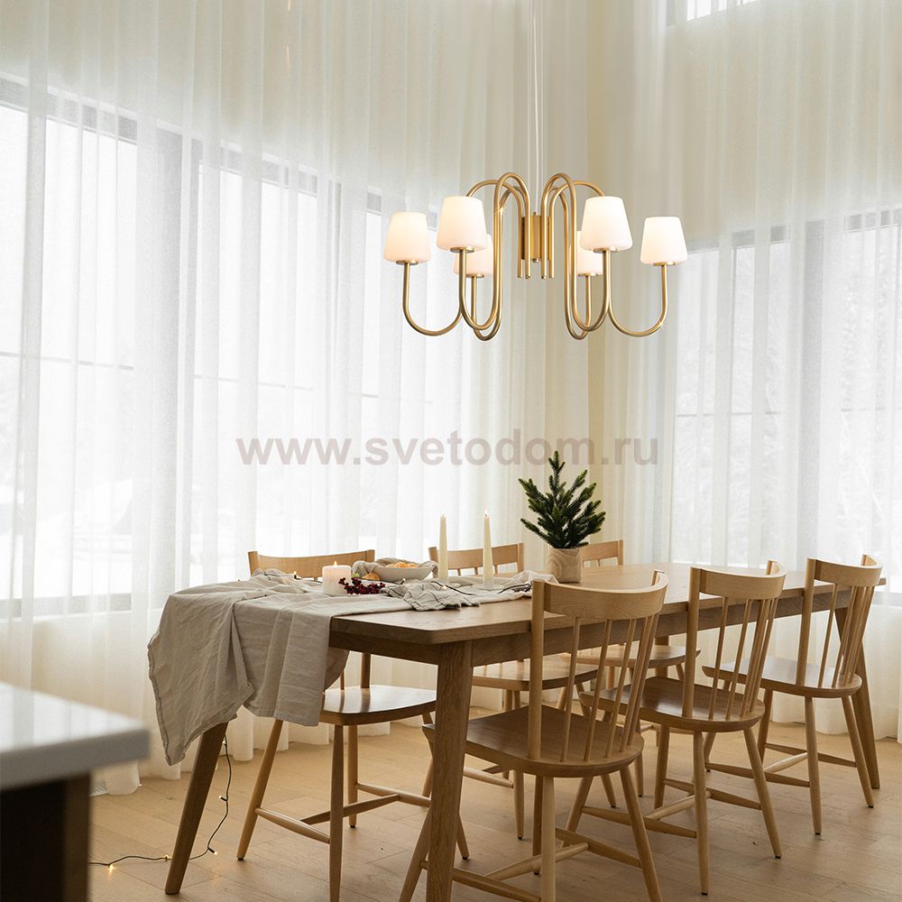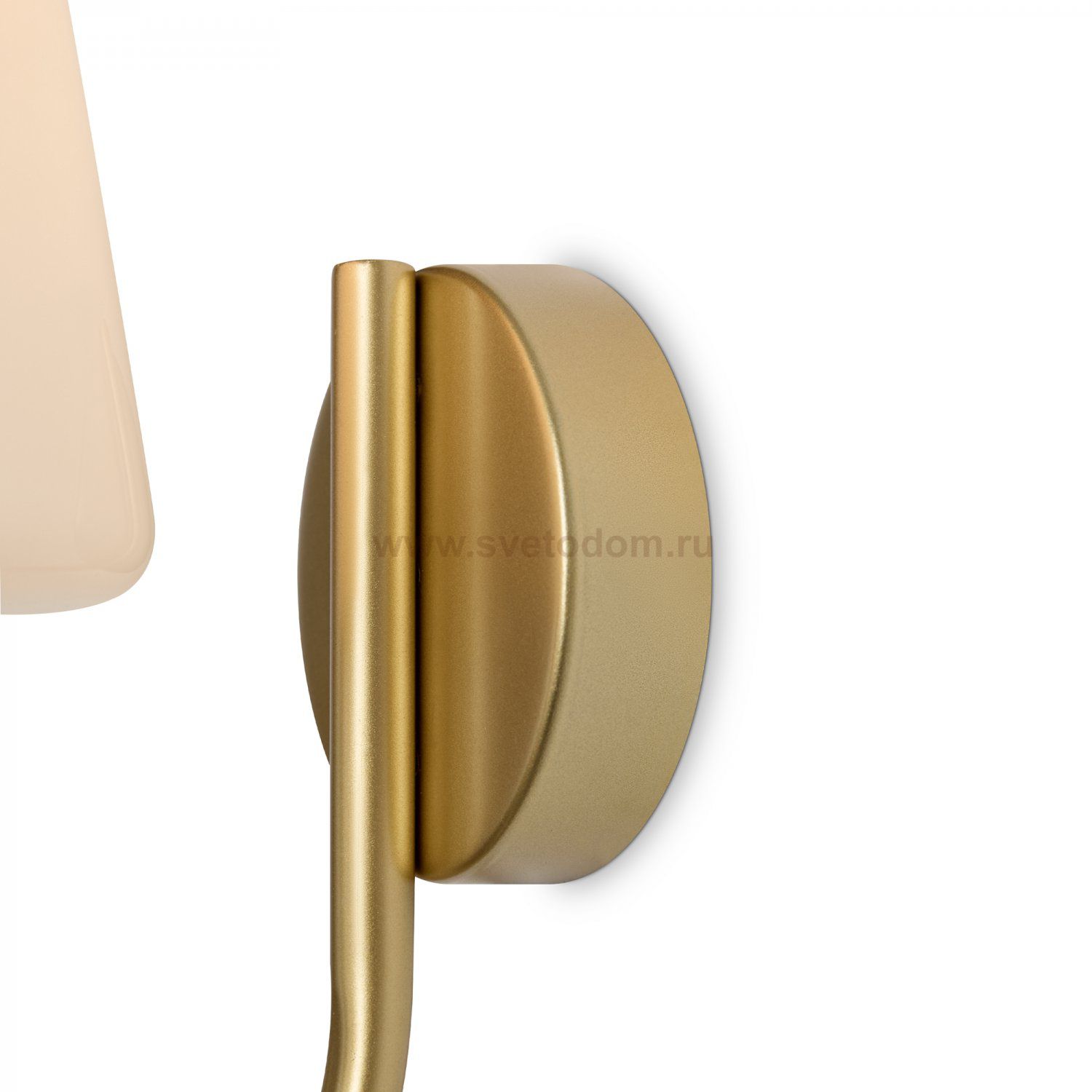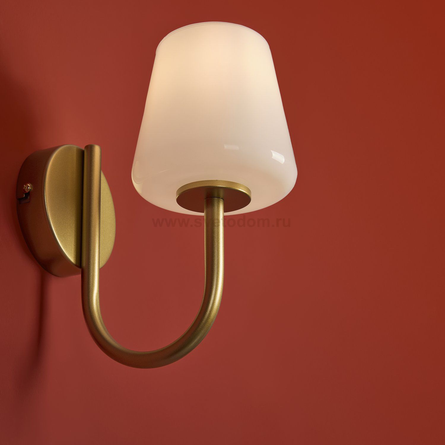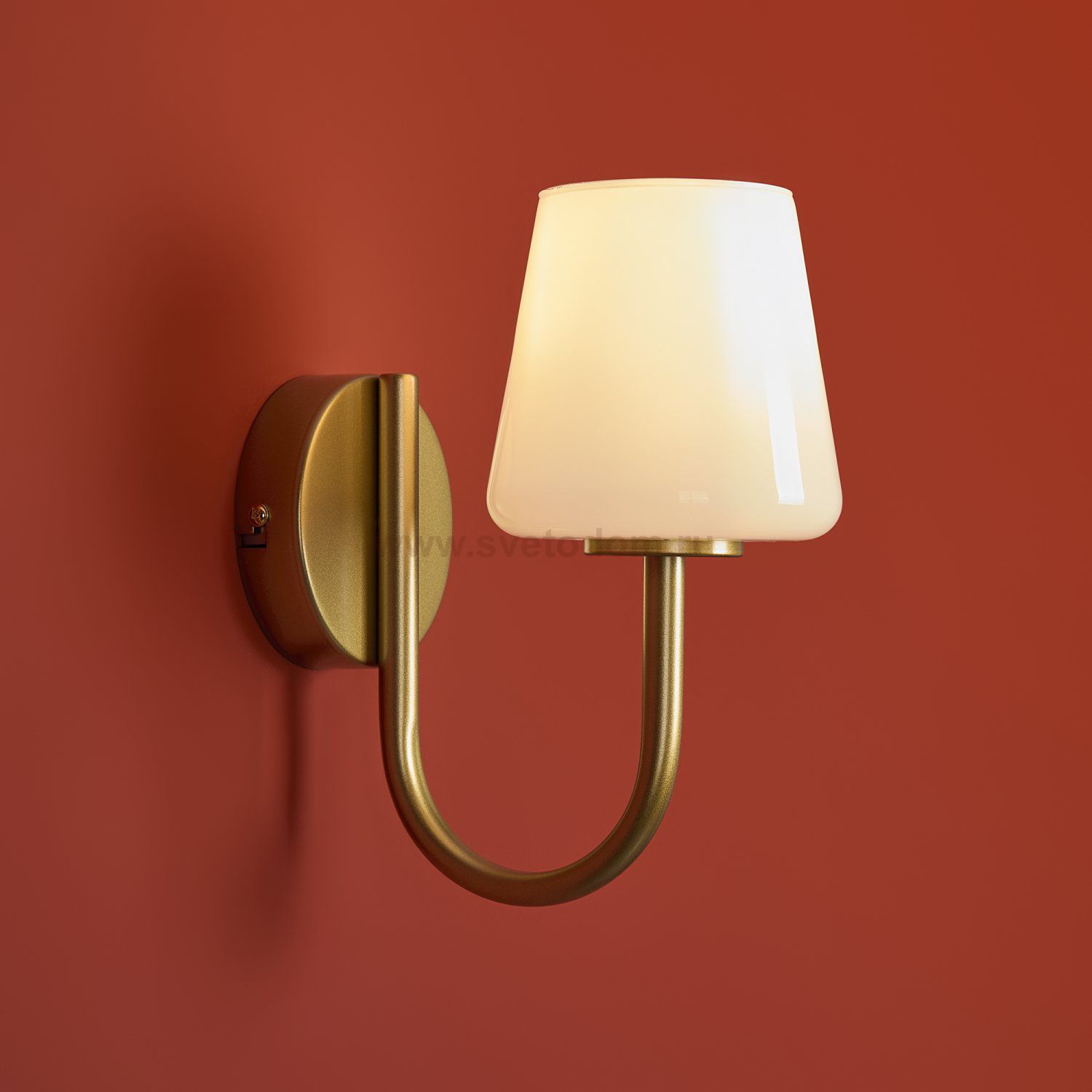 Материал арматуры — металл, цвет — матовое золото. Подвесной и настенный светильники с цоколем E14. Плафоны выполнены из белого глянцевого стекла, которые мягко рассеивают свет. Минималистичная классика подходит для современных и традиционных интерьеров.