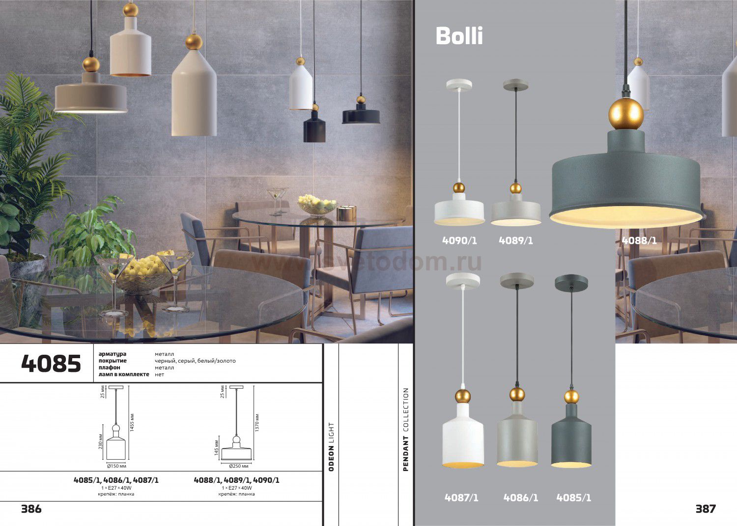Линия Bolli выполнена в стиле минимализм и идеально впишется в современные интерьеры в стиле лофт, хай-тек, минимализм. Светильник имеет четкие, но плавные линии и довольно простую форму. Плафон и основание светильника выполнены из металла и окрашены в холодные оттенки: темно-серый (графит), серый, белый. Верхушку плафона украшает небольшой золотой шар, преображающий брутальный вид и придающий некую изюминку индустриальному дизайну.