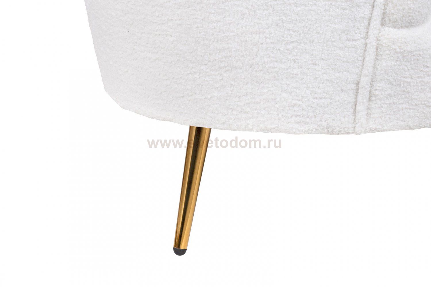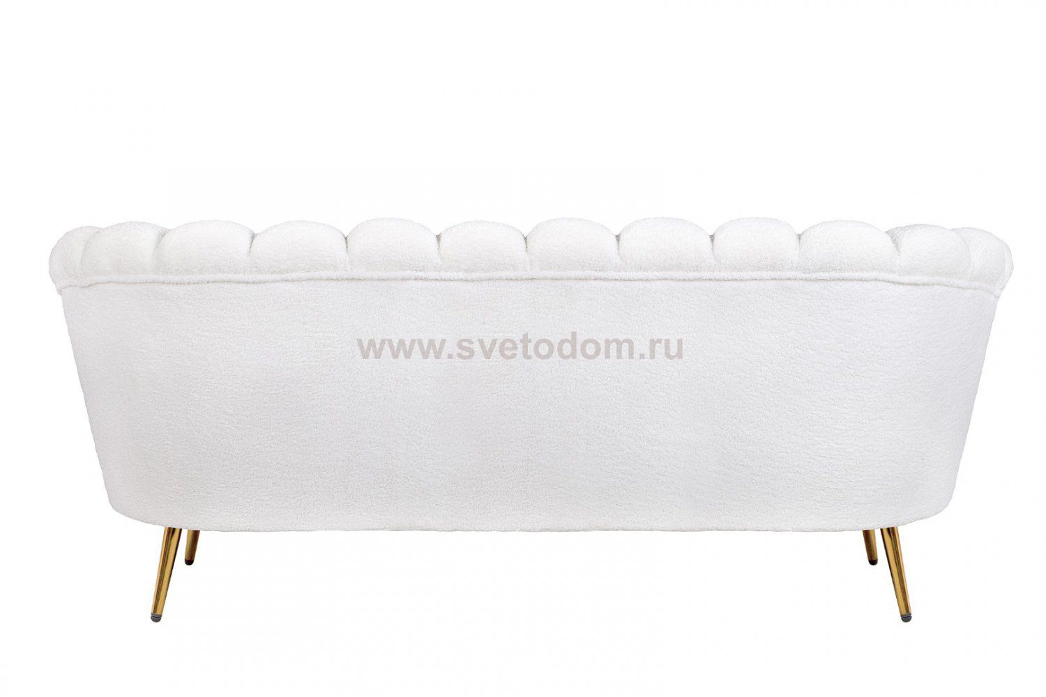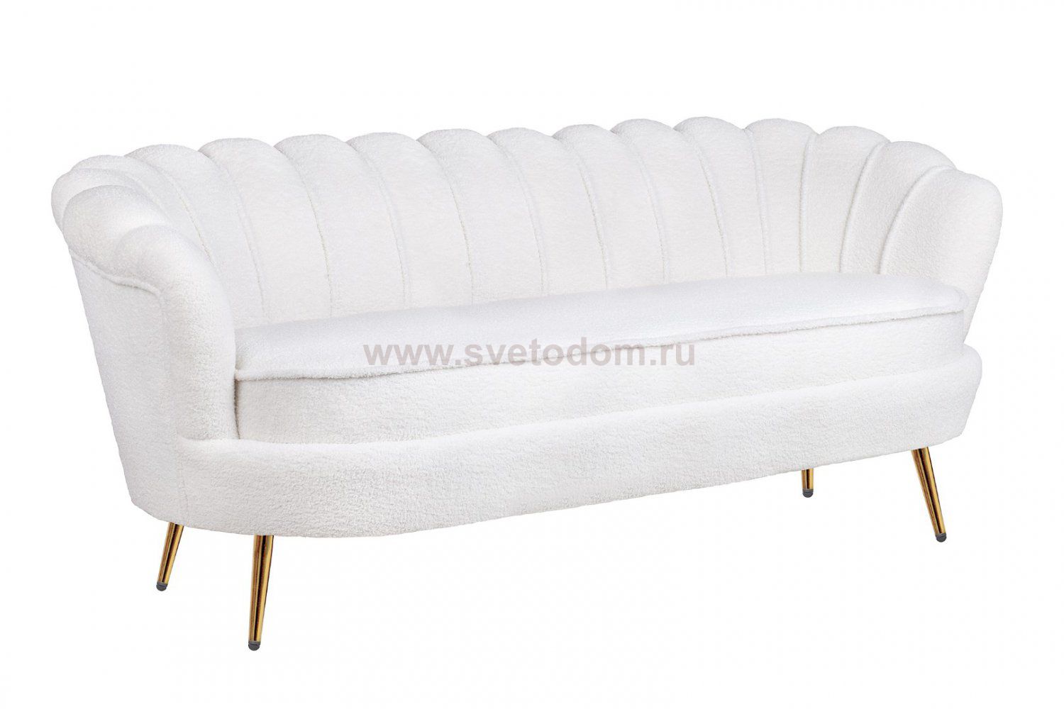 Белый диван с обивкой из букле Pearl triple boucle на основе каркаса из натурального дерева, с обивкой из букле, декорированной продольными стежками на внутренней стороне спинки. Модель выполнена в белого цвете, по форме напоминает створку раковины, огибающей жемчужину – круглую подушку для сидения. Короткие металлические ножки с блестящей золотистой поверхностью расходятся в виде лучей под небольшим наклоном к основанию. Мебель роскошно выглядит и подходит для оформления элитных интерьеров.