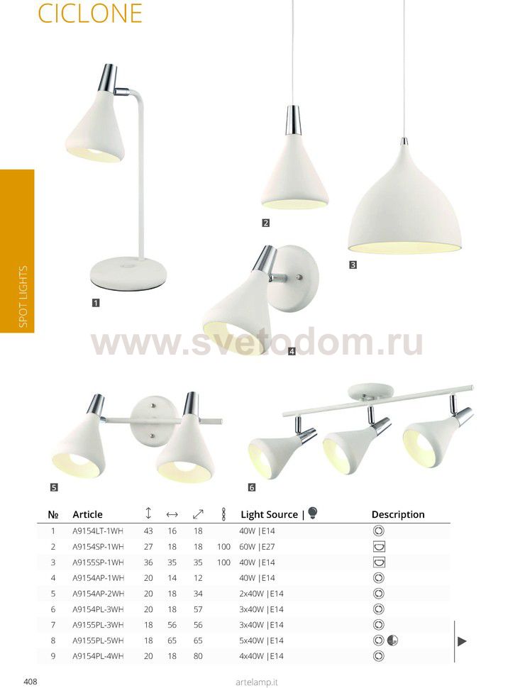 Светильники-споты – это оригинальные изделия с современным дизайном. Они позволяют не ограничивать свою фантазию при выборе освещения для интерьера. Такие модели обеспечивают достаточно качественный свет. Благодаря компактным размерам Вы можете использовать несколько спотов для одного помещения. Интернет-магазин «Светодом» предлагает необычный светильник-спот ARTE Lamp A9154AP-1WH по привлекательной цене. Эта модель станет отличным дополнением к люстре, выполненной в том же стиле. Перед оформлением заказа изучите характеристики изделия. Купить светильник-спот ARTE Lamp A9154AP-1WH в нашем онлайн-магазине Вы можете либо с помощью формы на сайте, либо по указанным выше телефонам. Обратите внимание, что у нас склады не только в Москве и Екатеринбурге, но и других городах России.