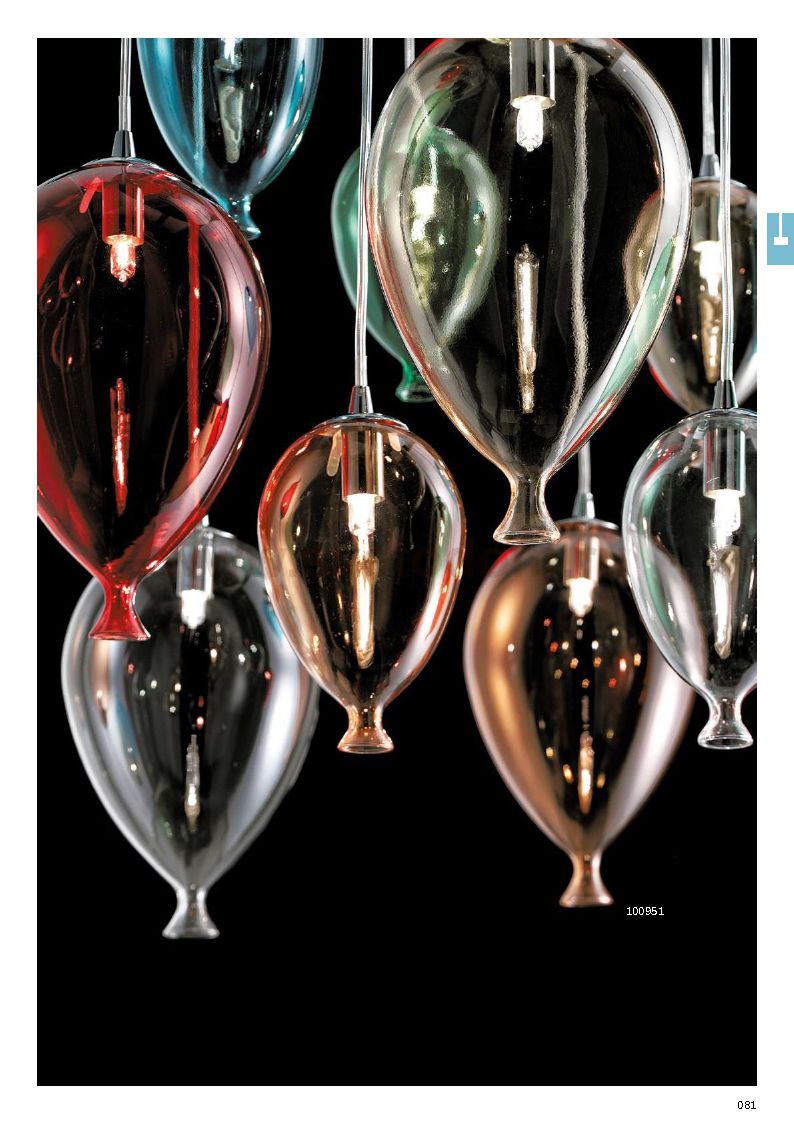 Арматура из металла с рассеивателями из дутого стекла ручной работы. Доступен с хромовой арматурой и разноцветными плафонами или хромовыми или с арматурой и белыми плафонами.