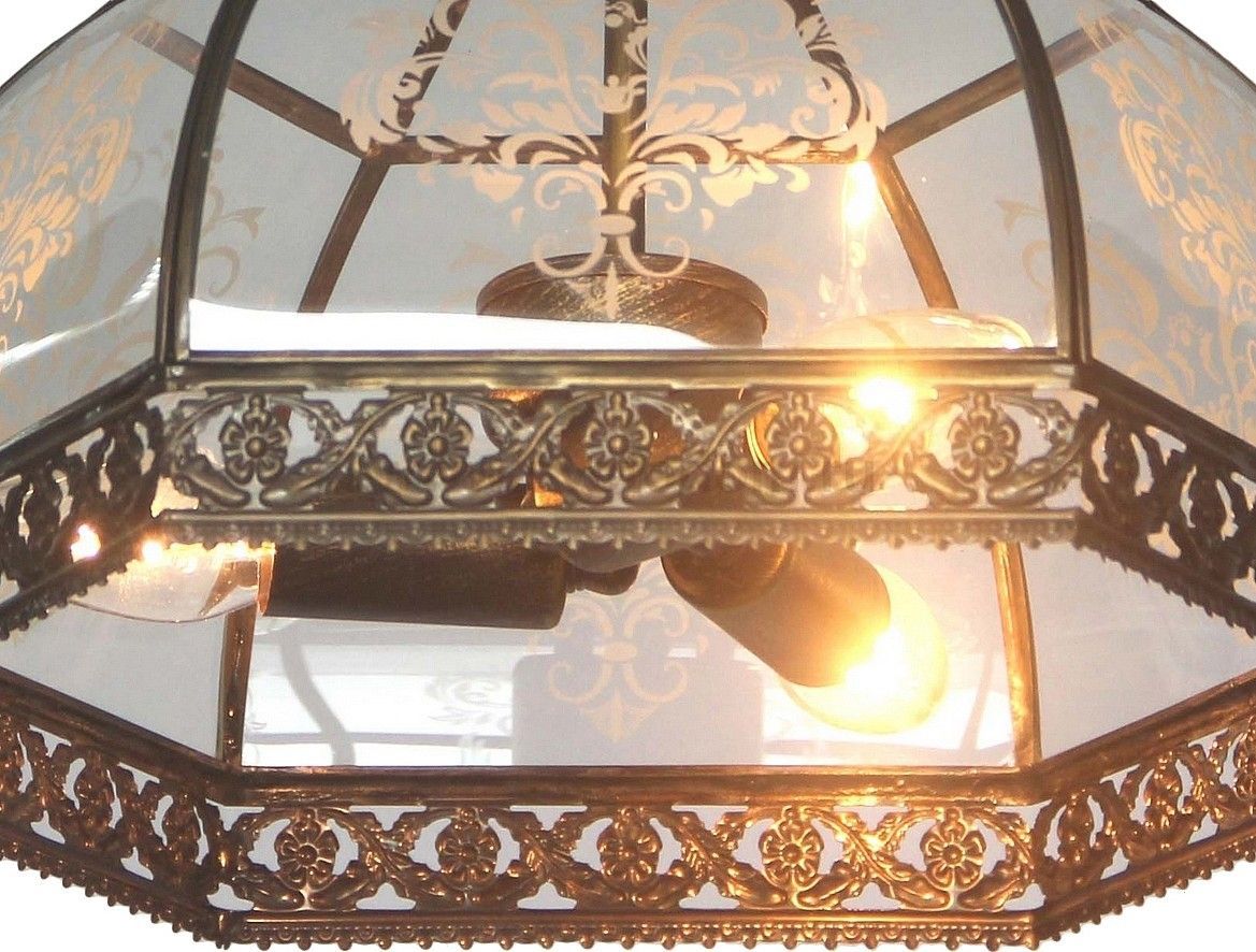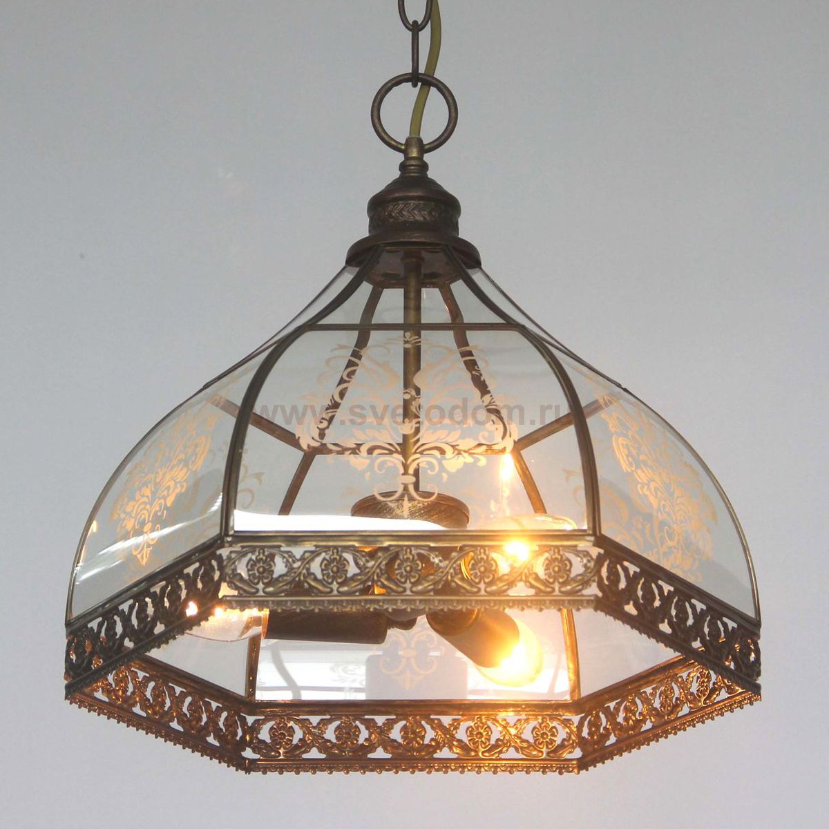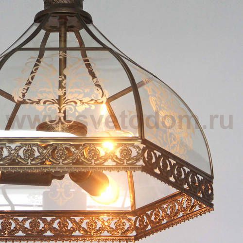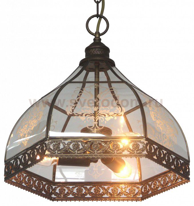 металл коричневого цвета, инкрустированное прозрачное стекло с белым узором Материал плафона