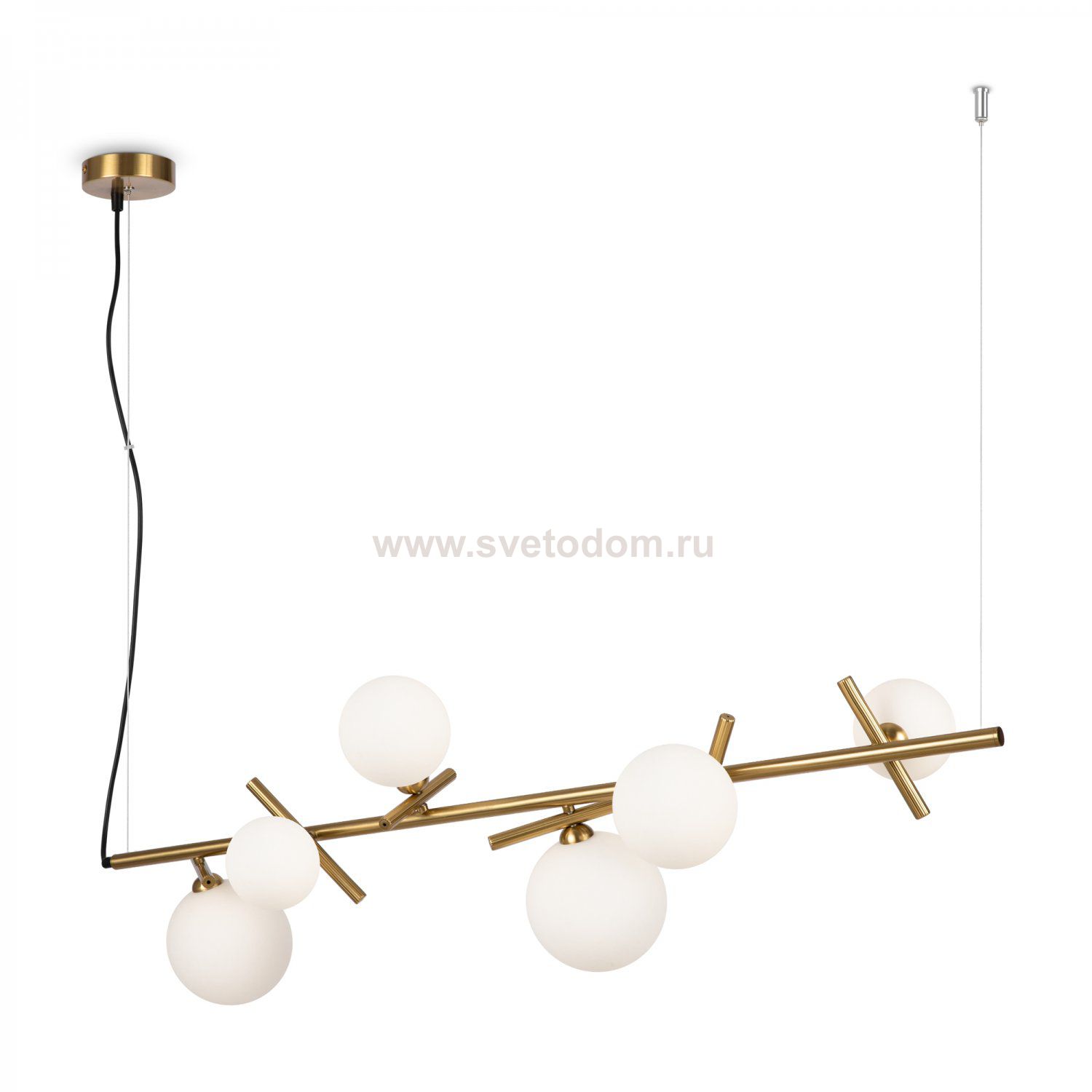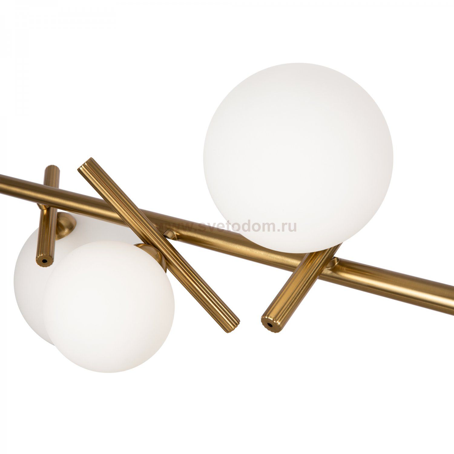Материал арматуры — рифленый металл, цвет — латунь. Плафоны-сферы из белого матового стекла для мягкого заливающего света. Воздушный образ плафонов, строгие тонкие линии арматуры придадут интерьеру изящество и легкость. Высота подвесов регулируется. Источник света — лампы с цоколем G9.
