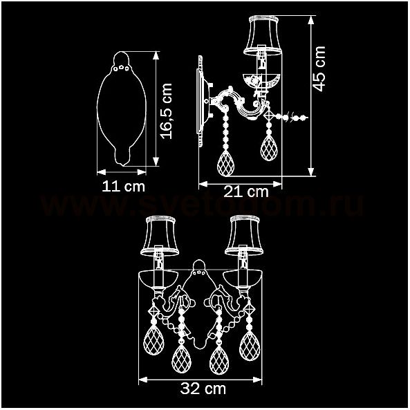 Высота min-max (см): 35; Ширина (см): 24; Глубина (см):10; Вес (кг): 2,2; Кол-во ламп: 2хЕ14; Мощность max (W): 40; Цвет основания/цвет стекла или абажура: Silver with patina; Штрих-код