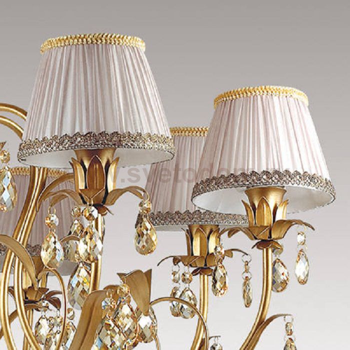 Арматура, декор: металл, хрусталь, плафон: ткань органза Материал плафона