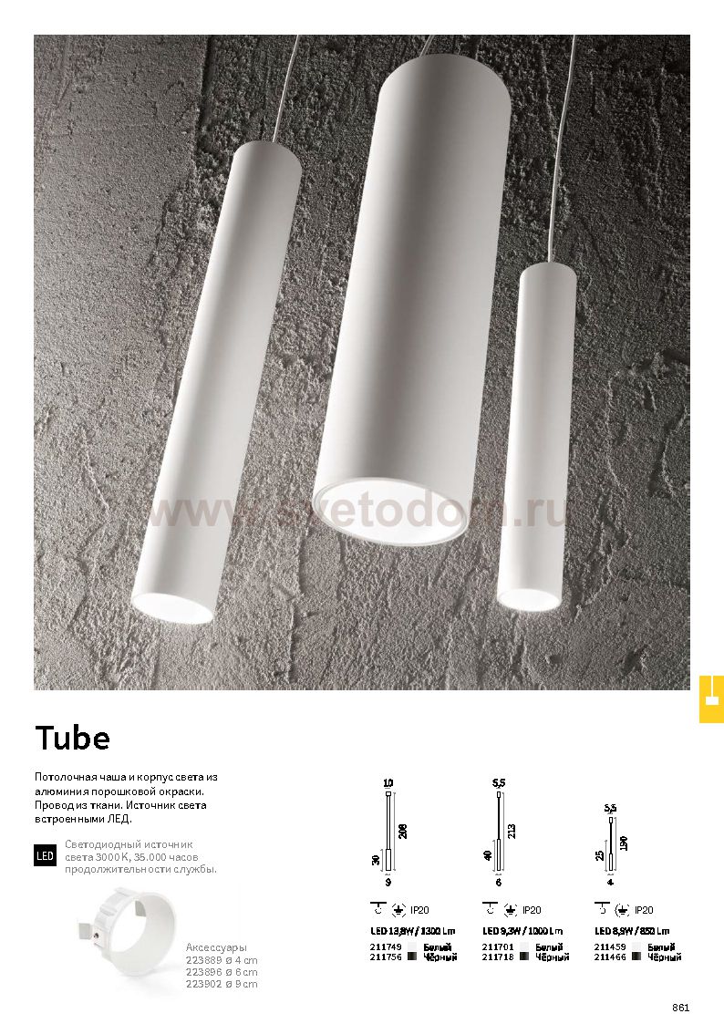 Подвесной светильник от известной итальянской фабрики Ideal lux из каталога Tecnico в современном стиле под артикулом TUBE SP1 MEDIUM BIANCO (211701) серии TUBE имеет ряд отличительных характеристик: Потолочная чаша и корпус света из алюминия порошковой окраски. Провод из ткани. Источник света встроенными ЛЕД.