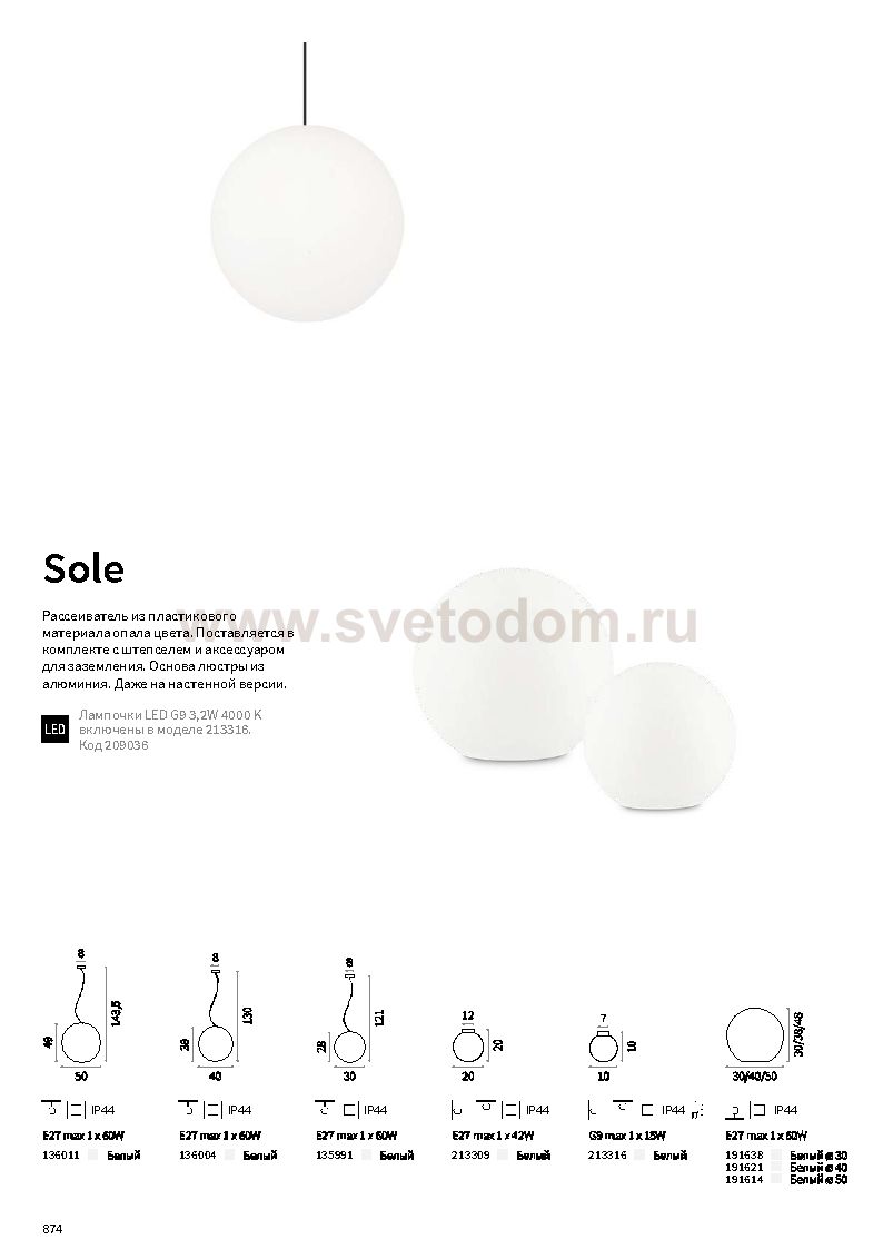 874 Отзывы Ideal Lux SOLE SP1 D40Пока нет отзывов об этом товаре, напишите и он обязательно появится после модерации! Оставить свой отзывПохожие товары Другие товары магазина Фото