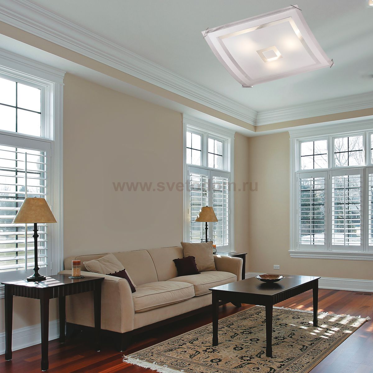 Настенно потолочный светильник Сонекс (Sonex) 3120 подходит как для установки в вертикальном положении - на стены, так и для установки в горизонтальном - на потолок. Для установки настенно потолочных светильников на натяжной потолок необходимо использовать светодиодные лампы LED, которые экономнее ламп Ильича (накаливания) в 10 раз, выделяют мало тепла и не дадут расплавиться Вашему потолку. |