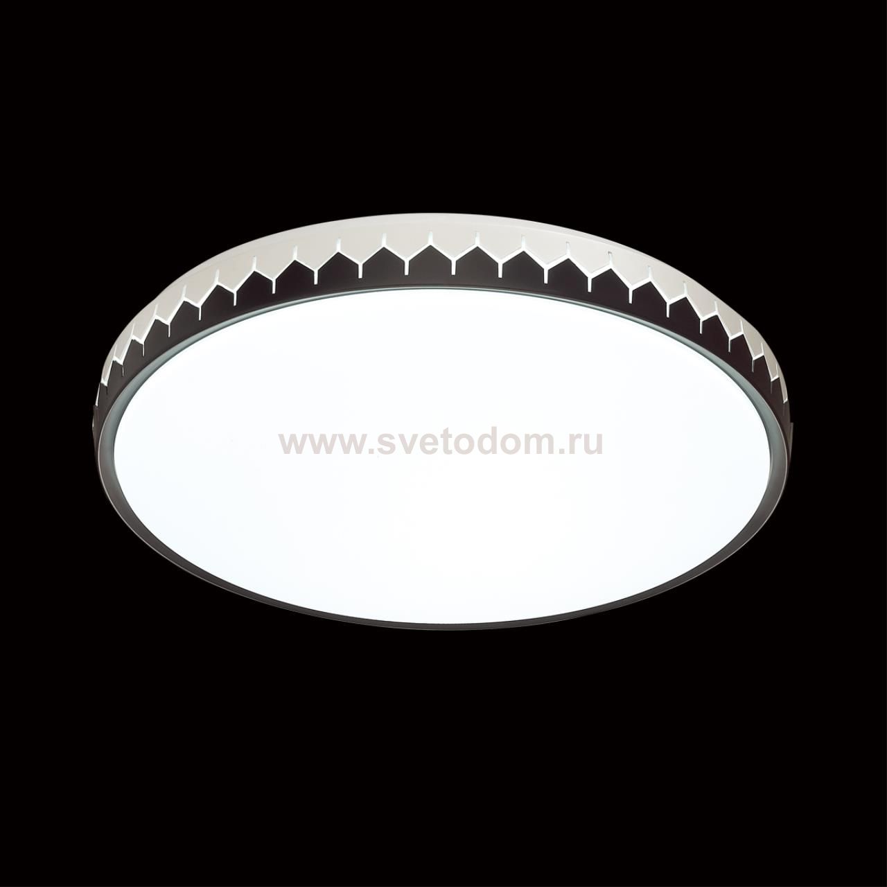 Светильник 3053/DL линии DORTA состоит из металлического основания (базы) и пластикового рассеивателя. Материал рассеивателя - качественный пластик белого цвета с матовой поверхностью, обеспечивающий светильнику равномерное рассеивание и хорошее светопропускание. Форма плафона: круглая, декорирована ободом в виде орнамента из металла черно-белого цвета. Степень защиты IP43 позволяет использовать светильник в определенных зонах влажных помещений. В комплект входит заменяемый LED модуль с линзами, мощностью 48Вт, которая соответствует лампе накаливания 350Вт. А также пульт ДУ, с помощью которого осуществляется плавное изменение цветовой температуры 3000-6000К, изменение яркости, переход в режим переключения теплого/белого/холодного/ночного света. Светильник имеет функцию "память".
