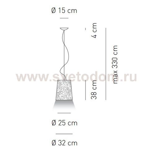 Подвесной светильник из коллекции Damasco. Абажур серого цвета покрыт дамасской тканью, пропитанной антипиреном. В коллекции два цвета: слоновая кость и серый. Размеры абажуров варьируются от 30 см до 90 см в диаметре. Также доступны модели с лампами накаливания или люминесцентными лампами.