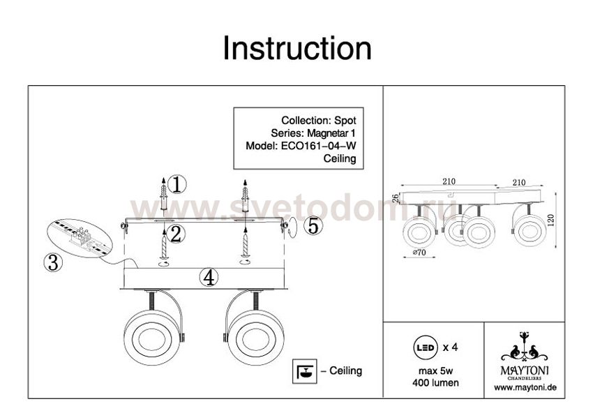 Непревзойденная модель SP161-CW-04-W от немецкой компании Maytoni относится к коллекции Magnetar 1 и отлично подойдет для установки на потолок в гостиной, оформленной в современном стиле. Светодиодный спот Maytoni Magnetar 1 SP161-CW-04-W с круглыми плафонами осветит помещение площадью 5 кв. м. Производитель Maytoni рекомендует использовать для устройства светодиодные лампы с цоколем LED. Осветительный прибор произведен с использованием материала: металл и может использоваться для натяжного потолка. В комплект поставки входят также лампы. Основным цветом модели SP161-CW-04-W является белый |