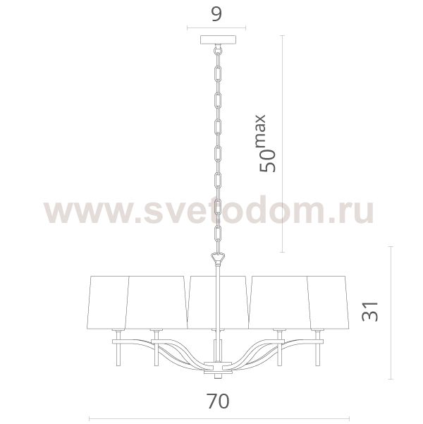 Характеризует подвесную систему светильника. Данную длину возможно изменять: дополнять или сокращать в пределах указанных данных.