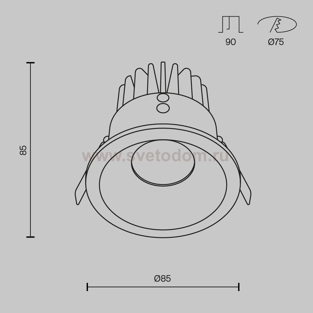 Данный размер указывает какое отверстие необходимо сделать для правильного монтажа. Зачастую светильники выбирают после ремонта и сделанных монтажных отверстий, тогда подбор осуществляется строго в размер +/- 2-5мм.