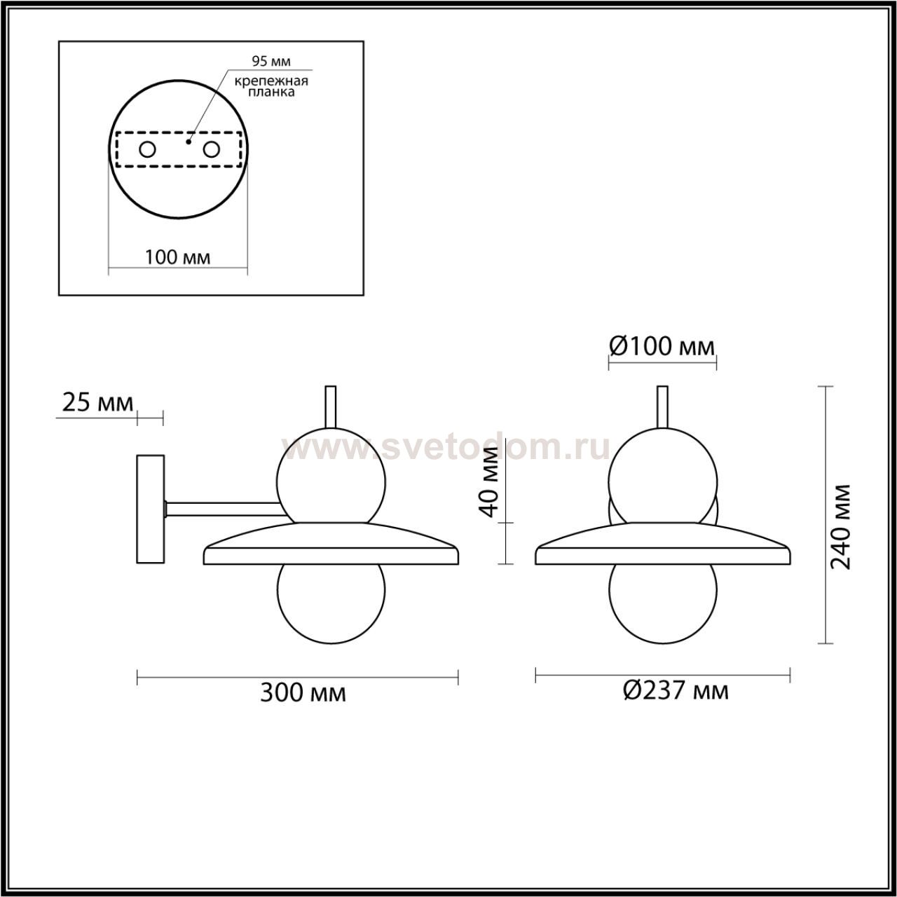 арматура:металл, плафон: стекло, декор: стекло Материал плафона