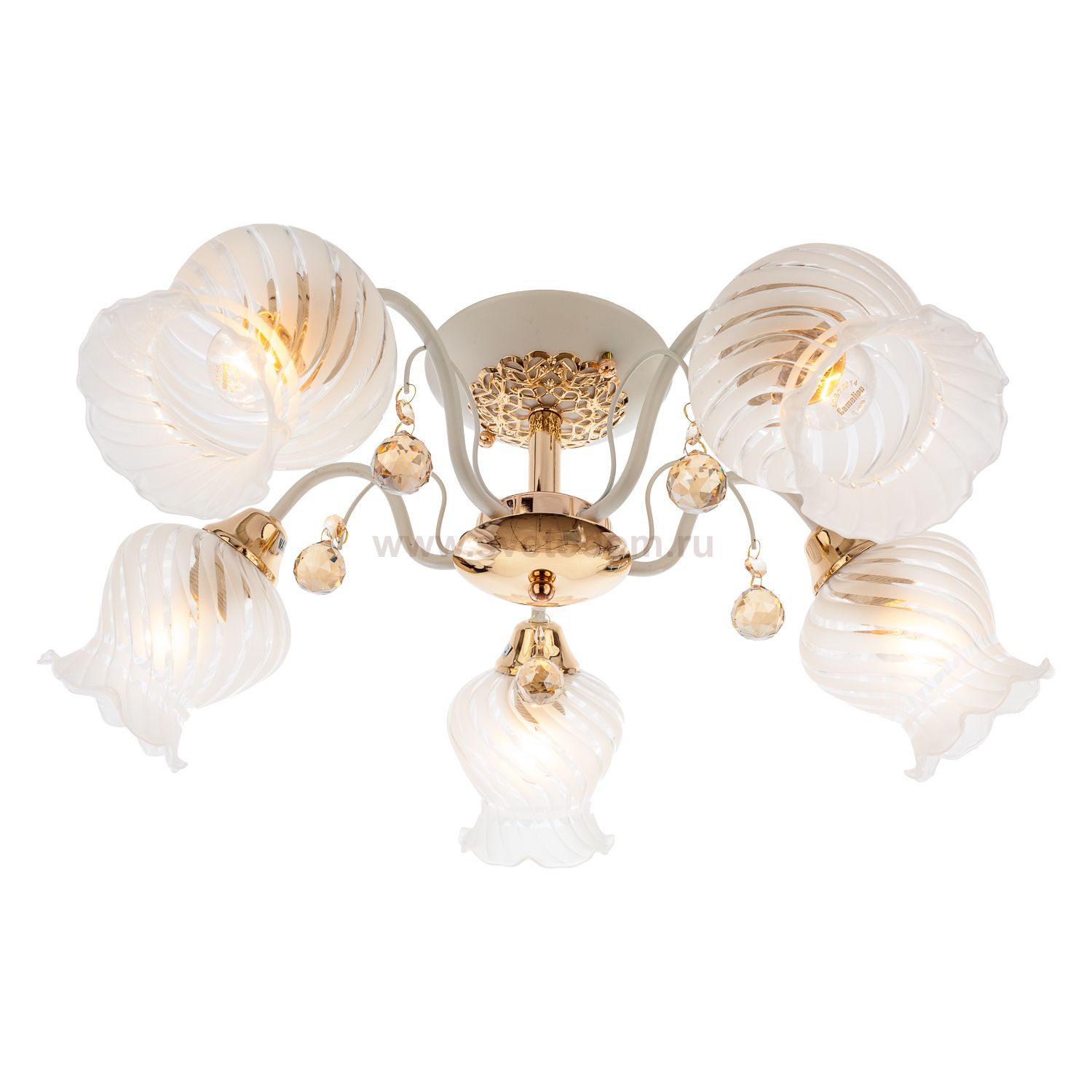 Люстра классическая 50574/5FGD+WT WT от бренда ЭкономСвет. Каркас выполнен из материала металл; цвета: белый и золото. Плафоны (светорассеиватели) выполнены из материала стекло, цвет прозрачный. Цоколь E27 рассчитан на лампы максимальной мощности до 60 Вт, а максимальная площадь освещения составит до 11 м?.