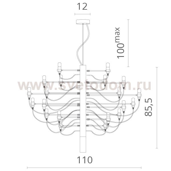 Характеризует подвесную систему светильника. Данную длину возможно изменять: дополнять или сокращать в пределах указанных данных.