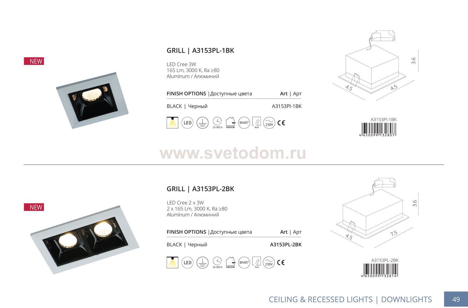 Светильник двойной встраиваемый Arte lamp A3153PL-2BK в большинстве своем является техническим освещением и носит больше практический эффект, нежели декоративный. С данной моделью светильника Вы сможете качественно и функционально осветить как жилые, так и общественные помещения. Также в коллекции Вы сможете выбрать другой типоразмер или оттенок для доходящего дизайн-проекта помещения.