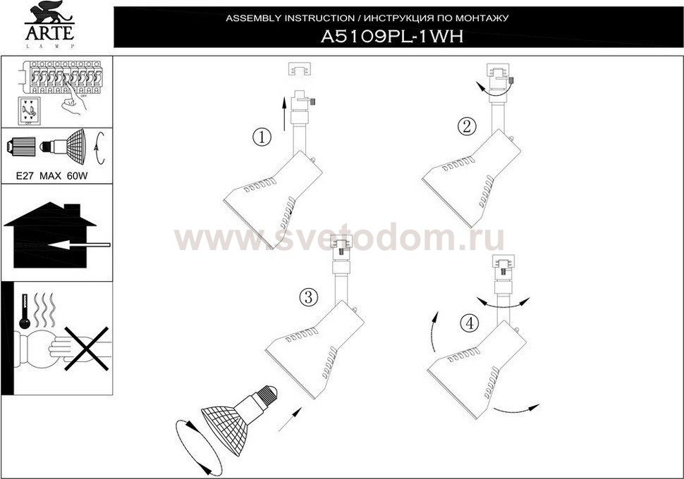 Светильник трековый под E27 цоколь Arte lamp A5109PL-1WH TRACK является важной составляющей современного функционального освещения на шинопроводе / треке для гостиной, зала, холла или другого помещения. При выборе обратите внимание на характеристики, позволяющие купить подходящие комплектующие из аналогичной коллекции и в той же цветовой гамме, что сделает помещение по-дизайнерски профессиональным и законченным.