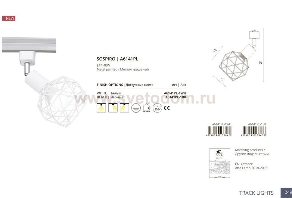 14 Отзывы Светильник трековый белый Arte Lamp A6141PL-1WH SOSPIROПока нет отзывов об этом товаре, напишите и он обязательно появится после модерации! Оставить свой отзывПохожие товары Другие товары магазина Фото
