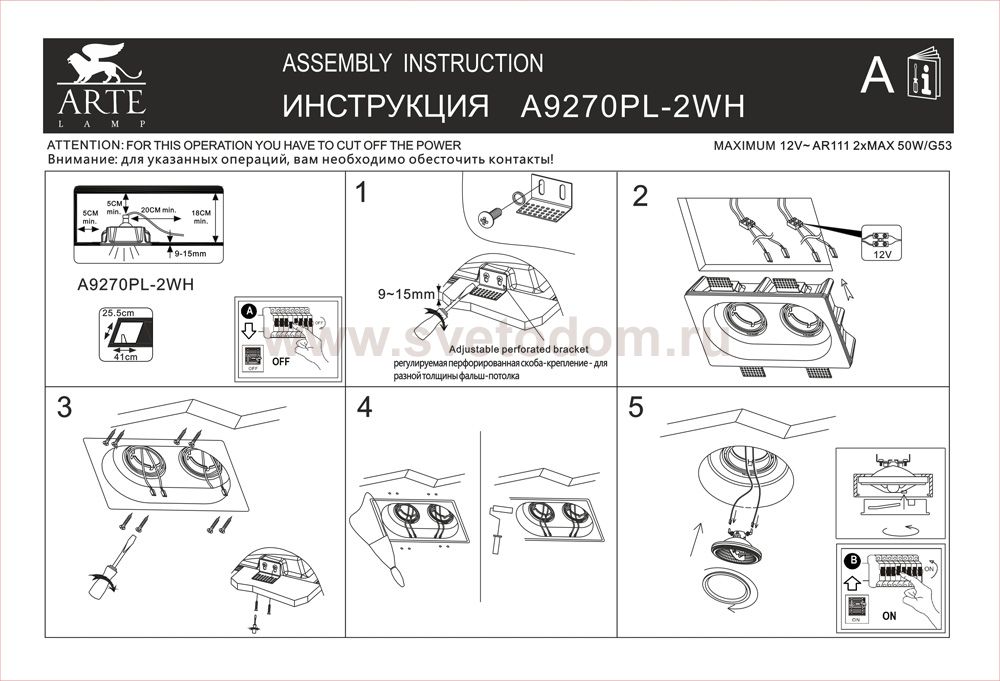 Встраиваемые светильники – популярное осветительное оборудование, которое можно использовать в качестве основного источника или в дополнение к люстре. Они позволяют создать нужную атмосферу атмосферу и привнести в интерьер уют и комфорт. Интернет-магазин «Светодом» предлагает стильный встраиваемый светильник ARTE Lamp A9270PL-2WH. Данная модель достаточно универсальна, поэтому подойдет практически под любой интерьер. Перед покупкой не забудьте ознакомиться с техническими параметрами, чтобы узнать тип цоколя, площадь освещения и другие важные характеристики. Приобрести встраиваемый светильник ARTE Lamp A9270PL-2WH в нашем онлайн-магазине Вы можете либо с помощью «Корзины», либо по контактным номерам. Мы развозим заказы по Москве, Екатеринбургу и остальным российским городам.