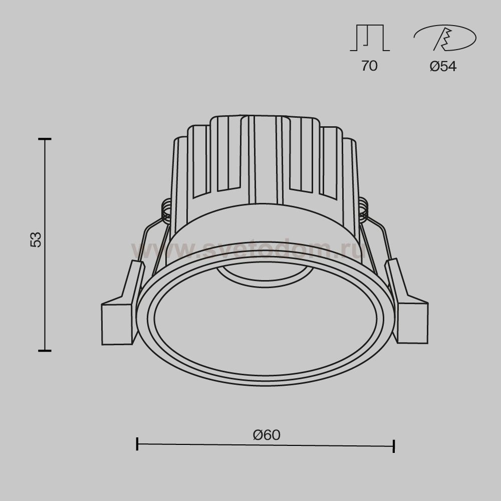 Данный размер указывает какое отверстие необходимо сделать для правильного монтажа. Зачастую светильники выбирают после ремонта и сделанных монтажных отверстий, тогда подбор осуществляется строго в размер +/- 2-5мм.